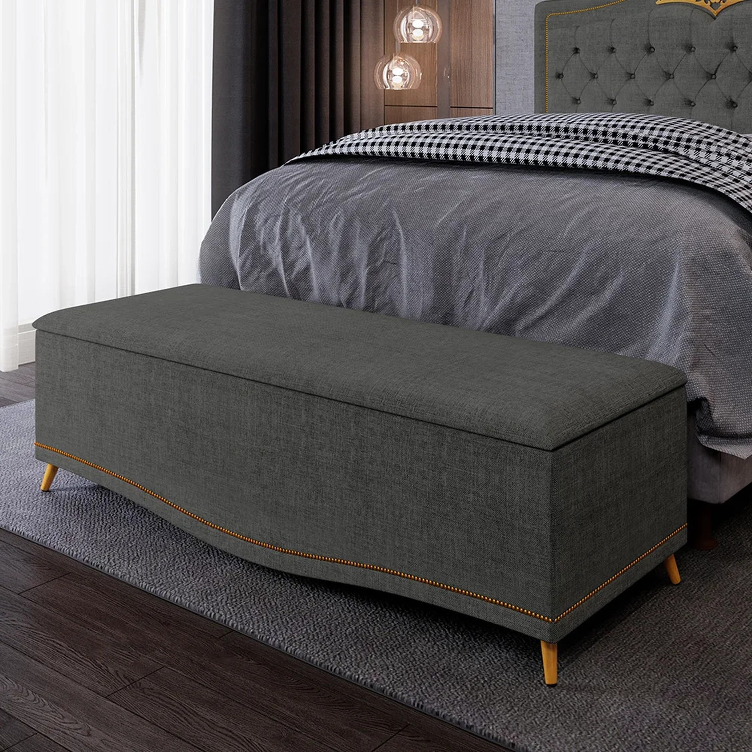 Que tal transformar o seu Quarto em um ambiente digno de realeza? Com a Calçadeira Baú Queen 160cm com Tachas Imperial J02 Linho Grafite, da Mpozenato você pode!