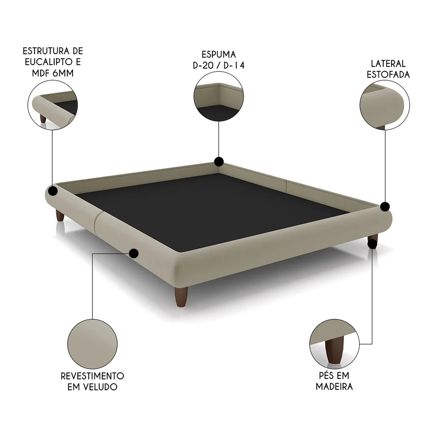 Se você busca uma cama casal que ofereça conforto, qualidade e estilo, então precisa conheçer a Cama King Base Box 193x203cm Pés Madeira Cold Z37 Veludo Bege, da Mpozenato. Com um design que foge da tradicional base box, essa cama foi desenvolvida para levar um toque de modernidade ao seu quarto, ao passo que agrega charme e estabilidade com os pés em madeira. Ou seja, garante uma noite tranquila e agradável.