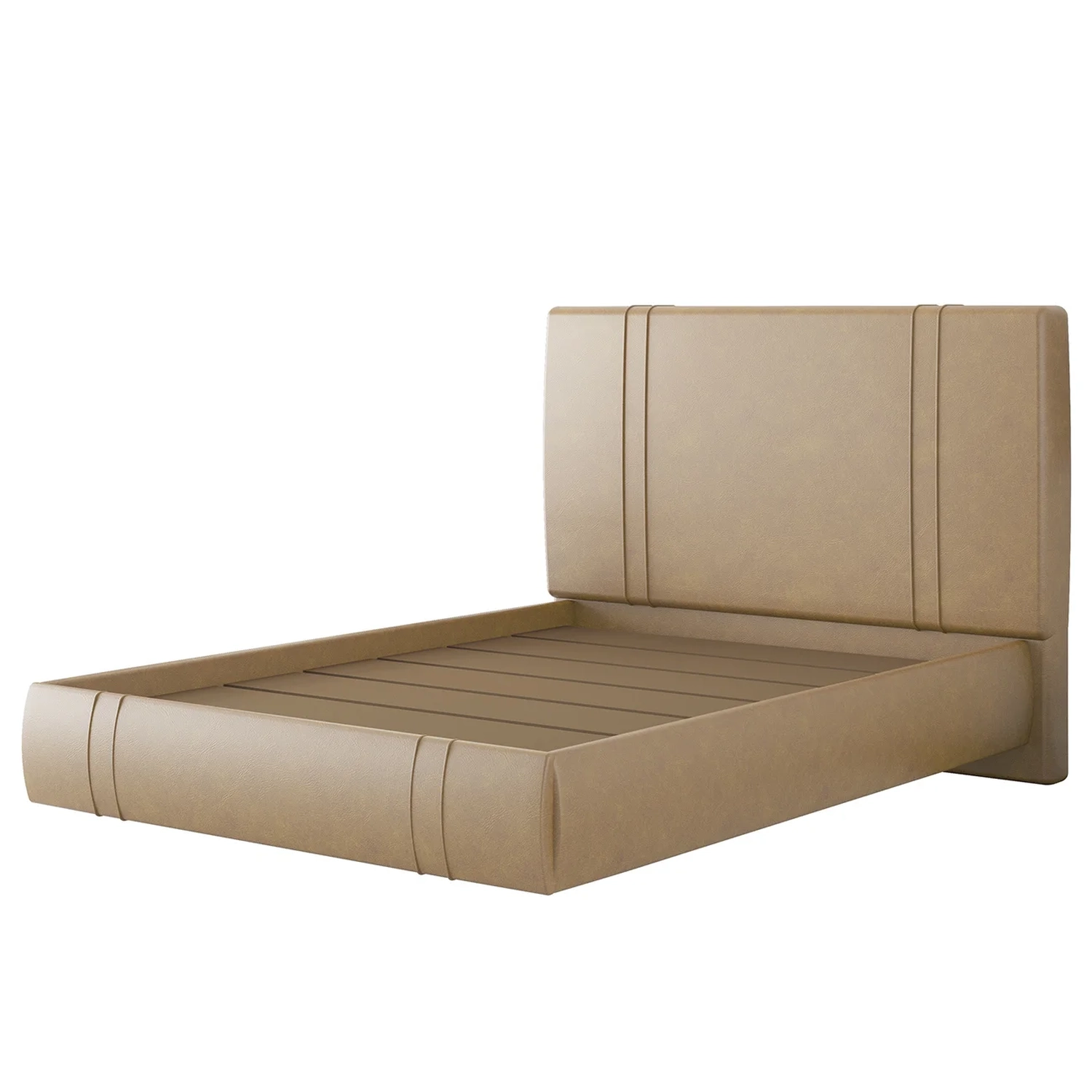 Cama Casal Flutuante Com Cabeceira 140cm Lyra Sintético Bege S05 - Mpozenato