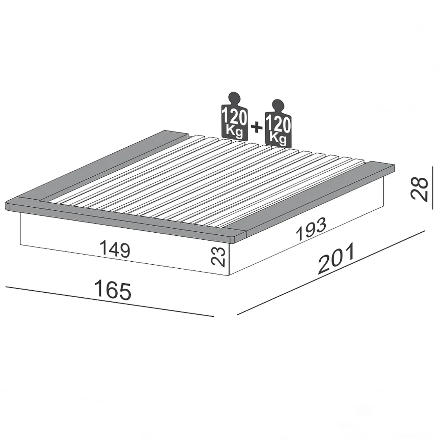 Dimensão do Produto Largura: 165 cm. Altura: 28 cm. Profundidade: 201 cm. Peso: 62,2 Kg.