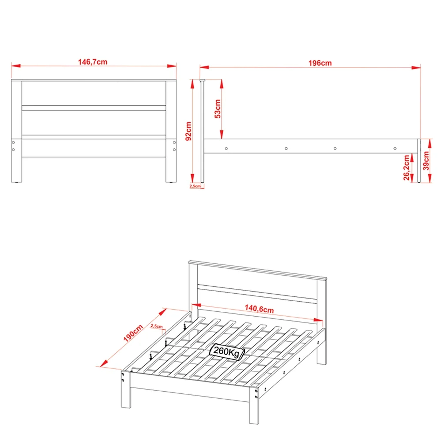 Peso Suportado: 260 Kg.