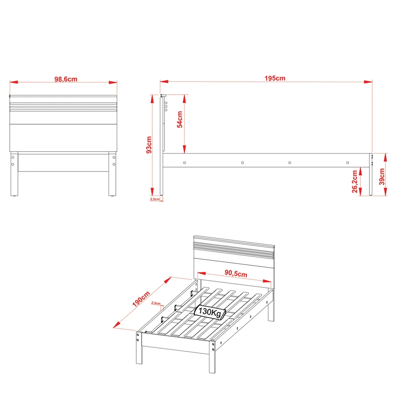 Medida indicada para colchão (L x P): 88 x 188 cm.