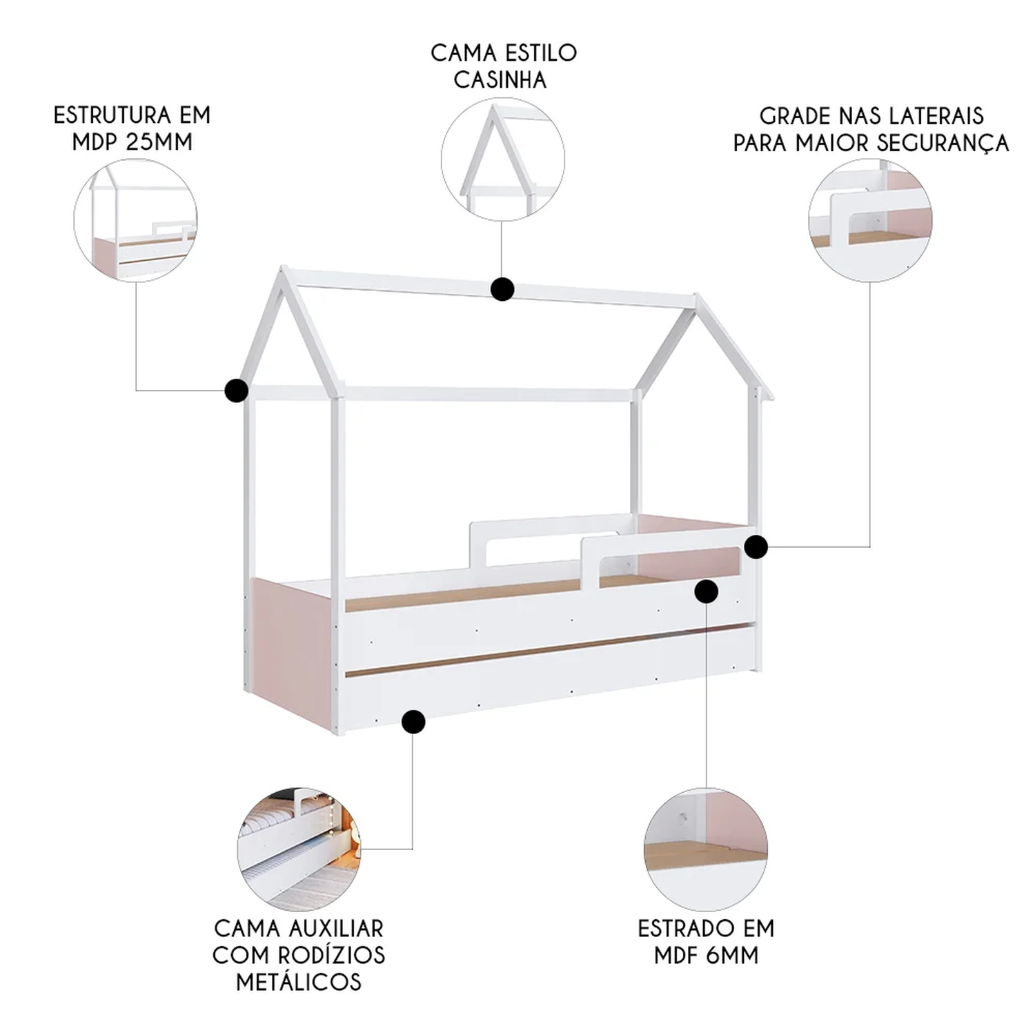 A Cama Infantil Casinha Com Auxiliar Infix C06 Branco/Rosa, da Mpozenato, é uma excelente escolha para quem busca aliar estilo e funcionalidade no quarto das crianças.