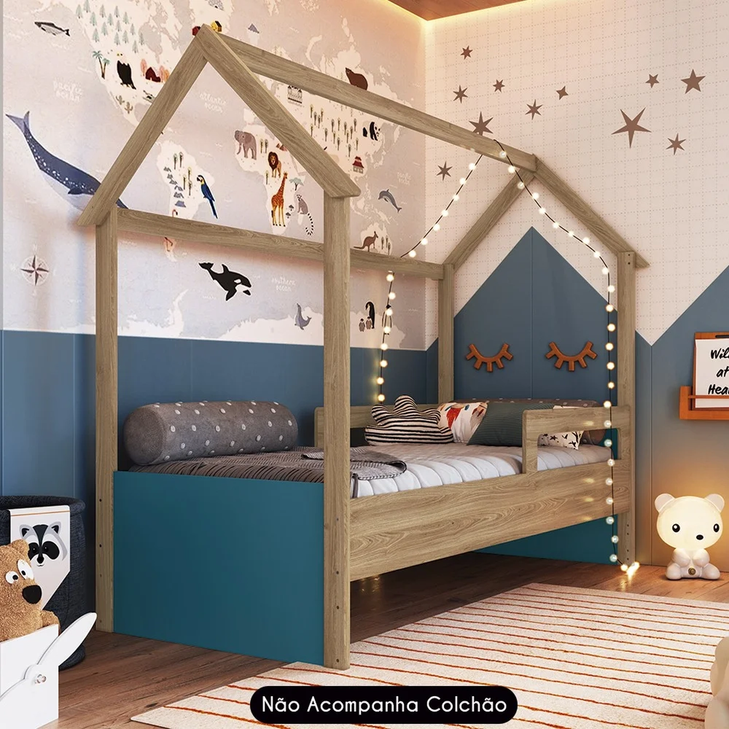 A Cama Infantil Montessoriana Casinha Infix C06 Aveiro/Azul, da Mpozenato, é perfeita para quem procura unir funcionalidade e diversão no Quarto Infantil.