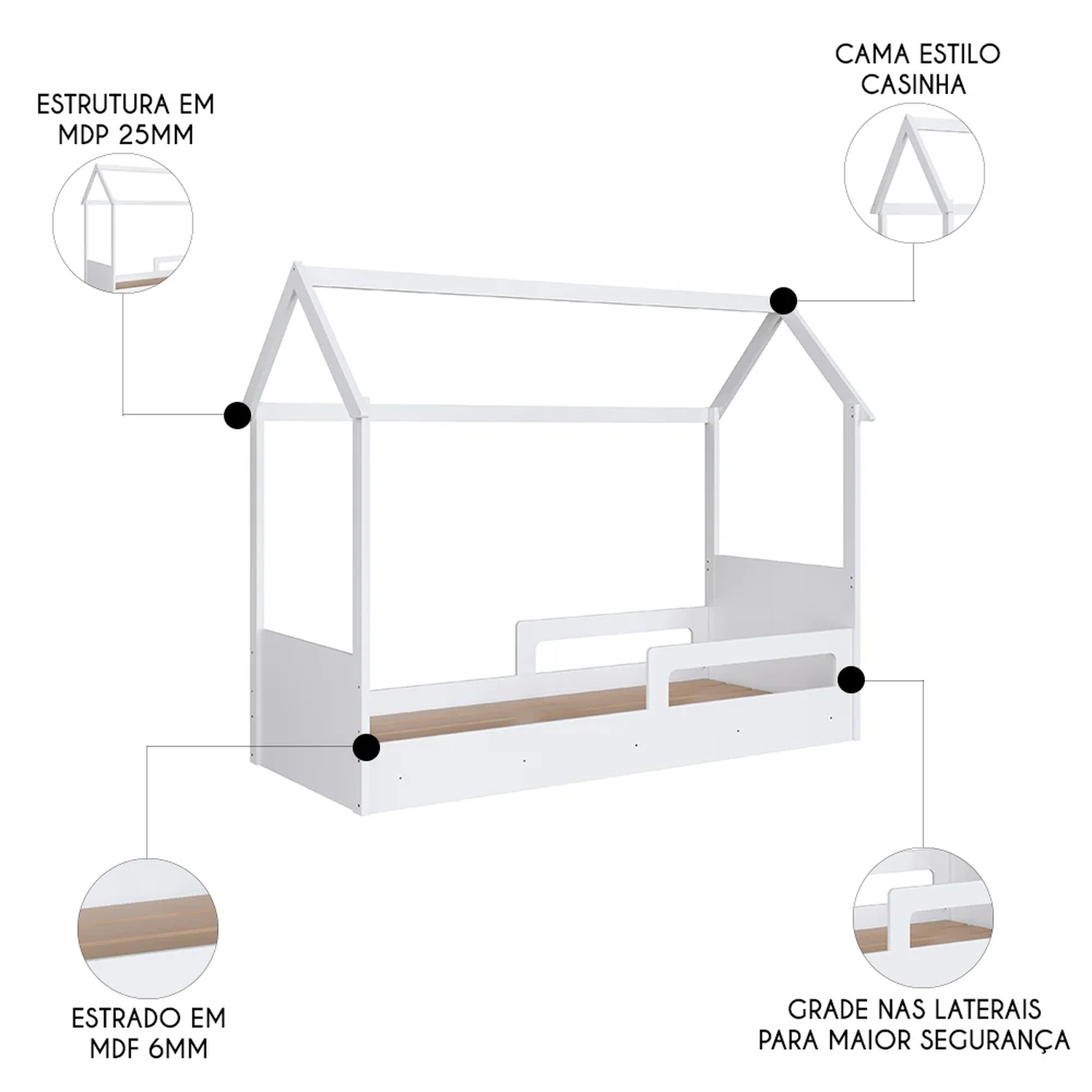 A Cama Infantil Montessoriana Casinha Infix C06 Branco, da Mpozenato, é perfeita para quem procura unir funcionalidade e diversão no Quarto Infantil.
