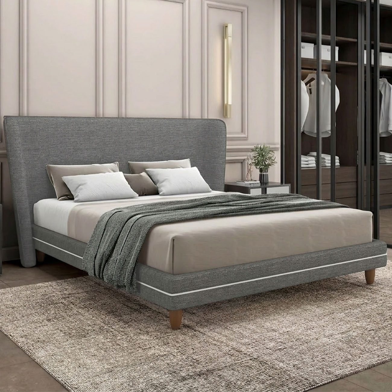Crie um ambiente aconchegante e sofisticado no seu Quarto com a Cama King 195cm Com Cabeceira Many Z37 Linho Cinza, da Mpozenato.