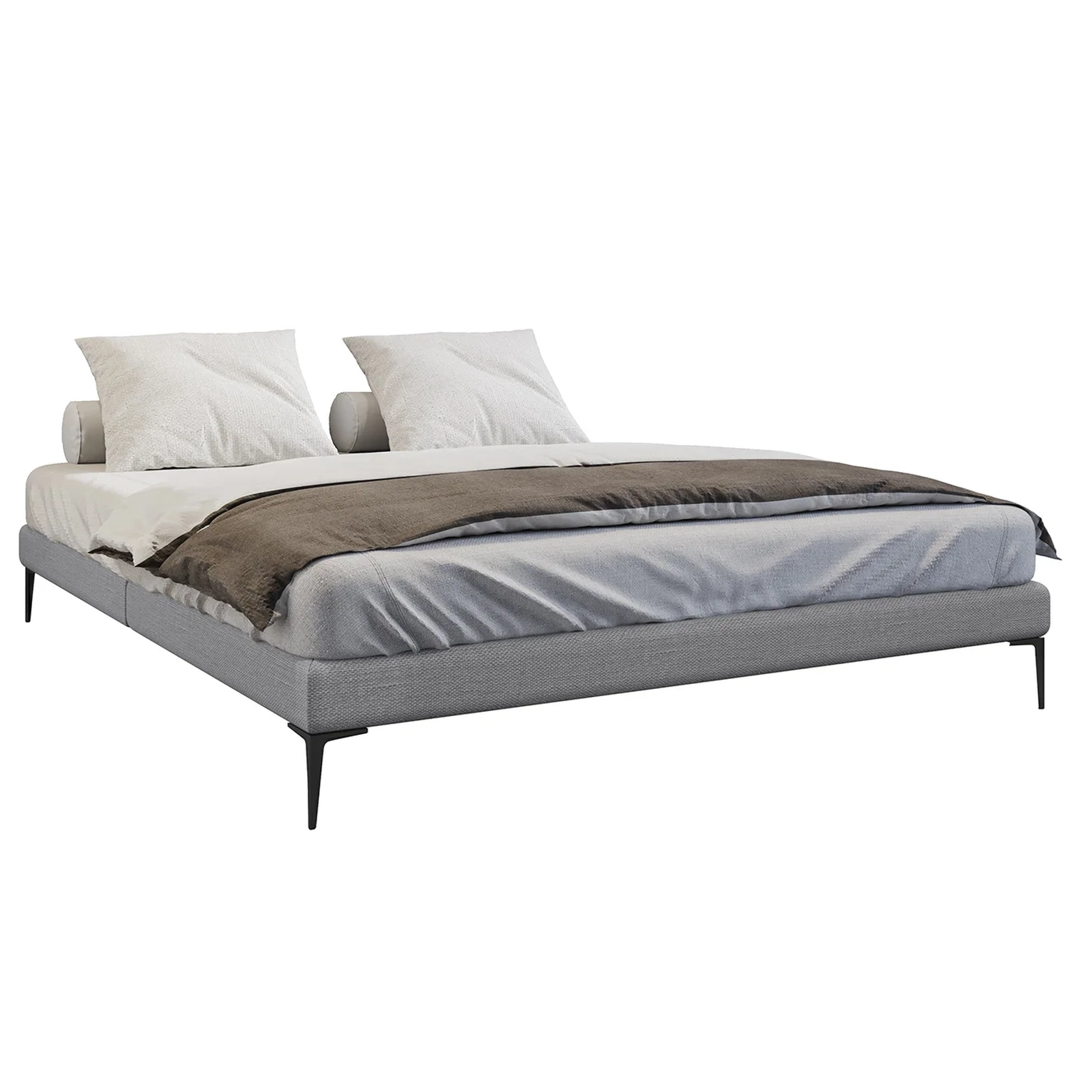 Cama King Base Box 193cm Pés de Ferro Susano Linho Cinza Z04 - Mpozenato