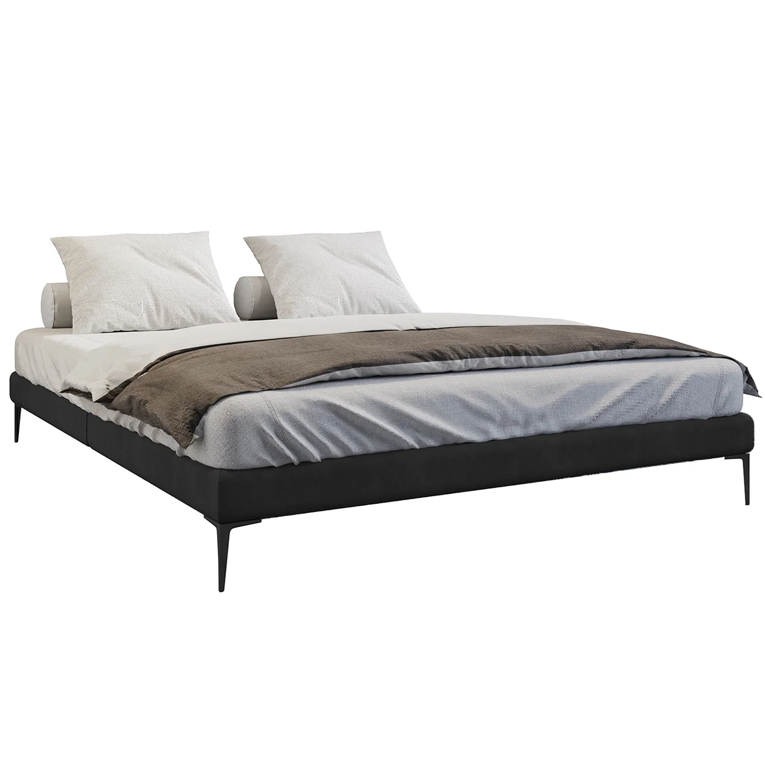 Cama King Base Box 193cm Pés de Ferro Susano Veludo Preto Z04 - Mpozenato