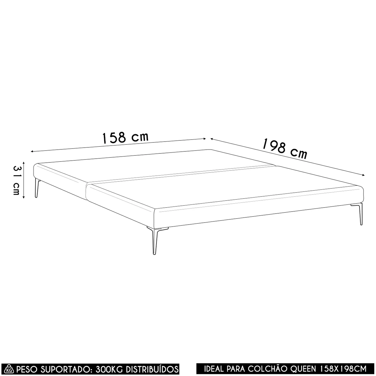 Cama Queen Base Box 158cm Pés Ferro Susano Linho Bege Z04 - Mpozenato