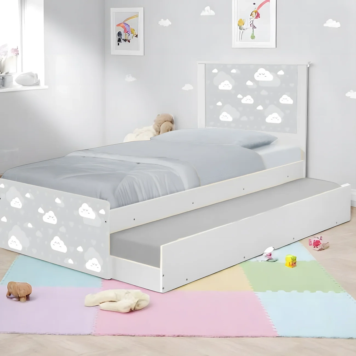 Cama Solteiro Infantil Com Auxiliar 188x88cm Nuvens K06 - Mpozenato