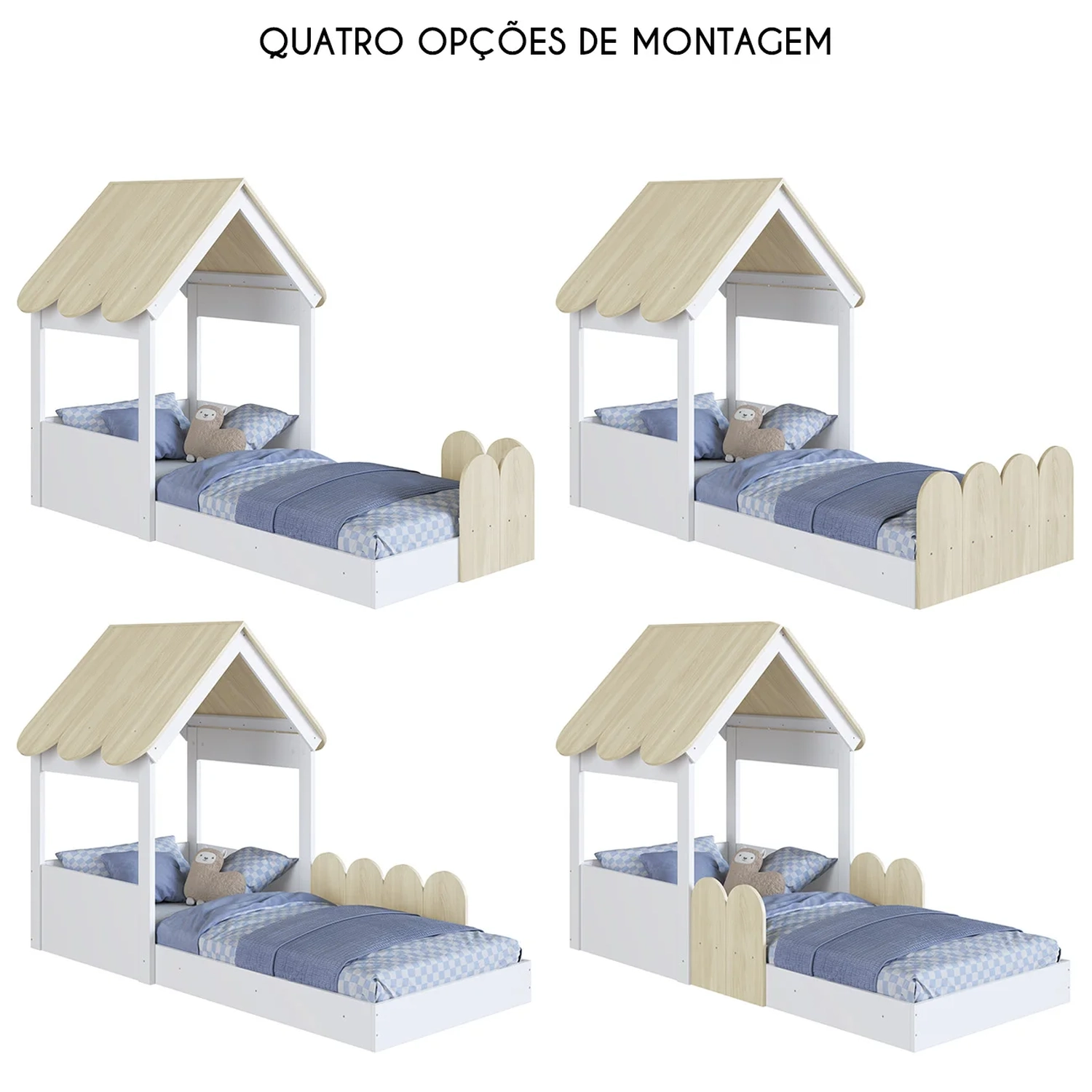 Possui estrutura em MDP com lastros em MDF garantindo firmeza e estabilidade no uso diário. Acompanha protetores laterais com bordas arredondadas que garantem mais segurança e podem ser montados em até quatro posições diferentes conforme a necessidade da família.
