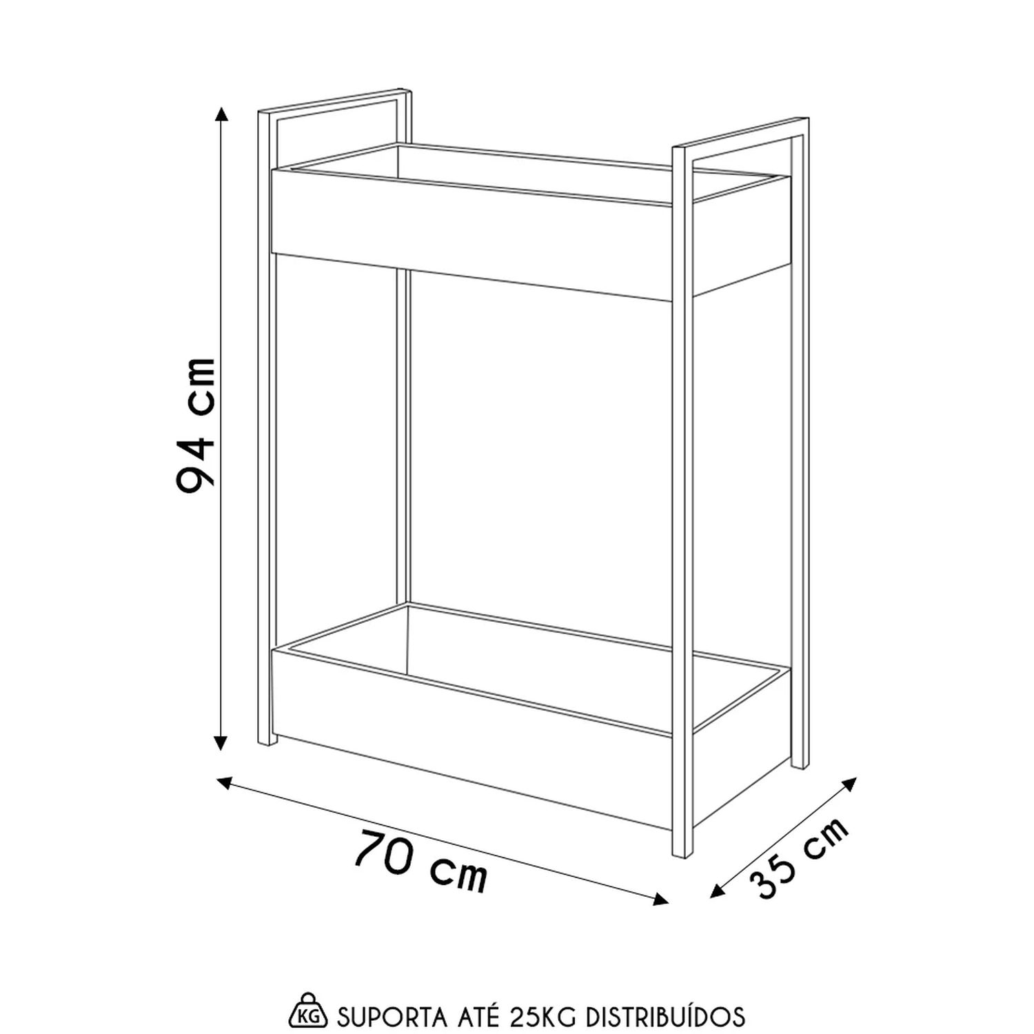 Quantidade de Prateleiras: 2 Prateleiras Caixa.