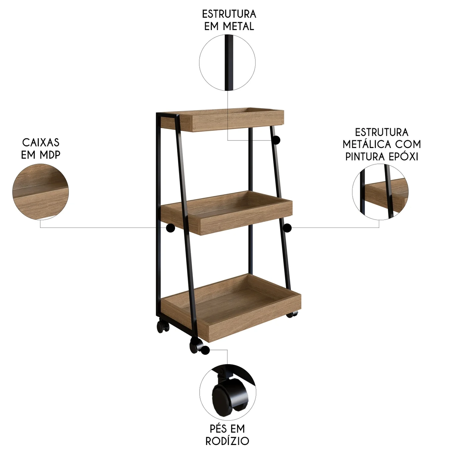 Suas caixas em MDP e estrutura metálica oferecem resistência e durabilidade, são perfeitas para utensílios, livros ou qualquer outro item. Design simples, mas sofisticado, torna o produto ideal para qualquer ambiente.