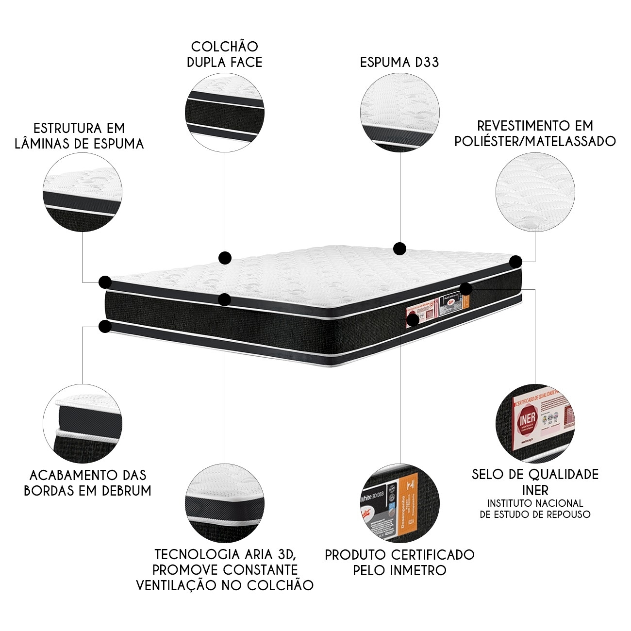 - Tecnologia aria 3D, promove constante ventilação no colchão.