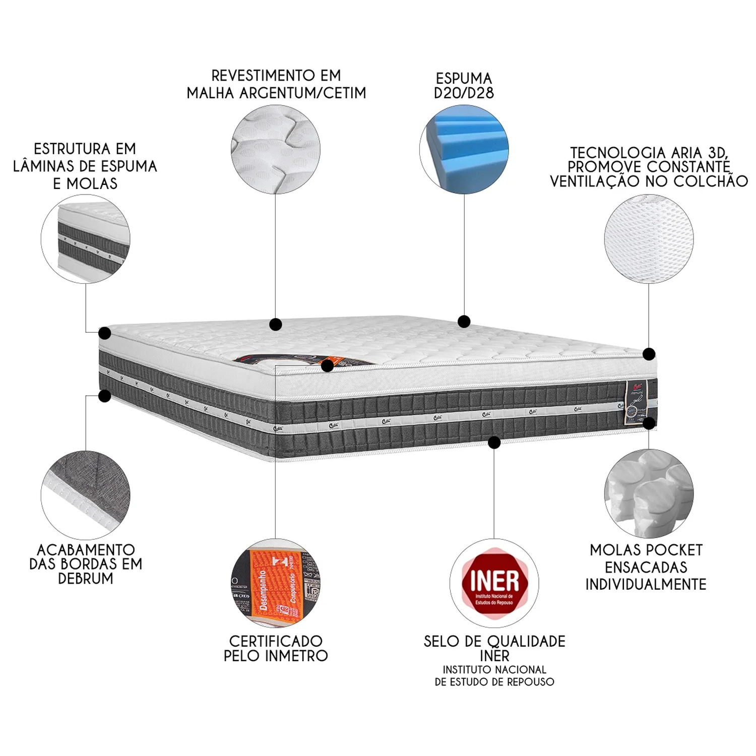 - Tecnologia aria 3D, promove constante ventilação no colchão.