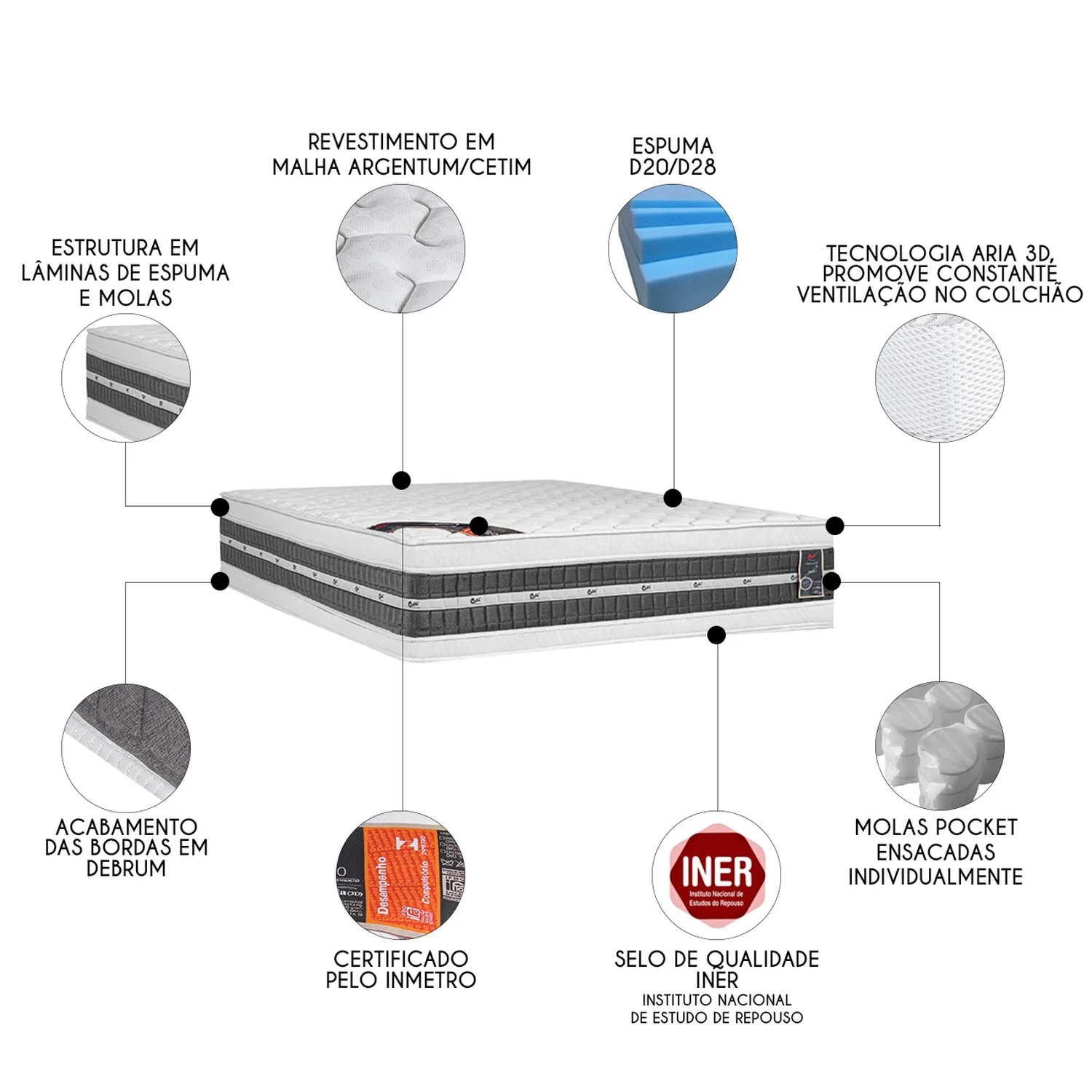 - Tecnologia aria 3D, promove constante ventilação no colchão.