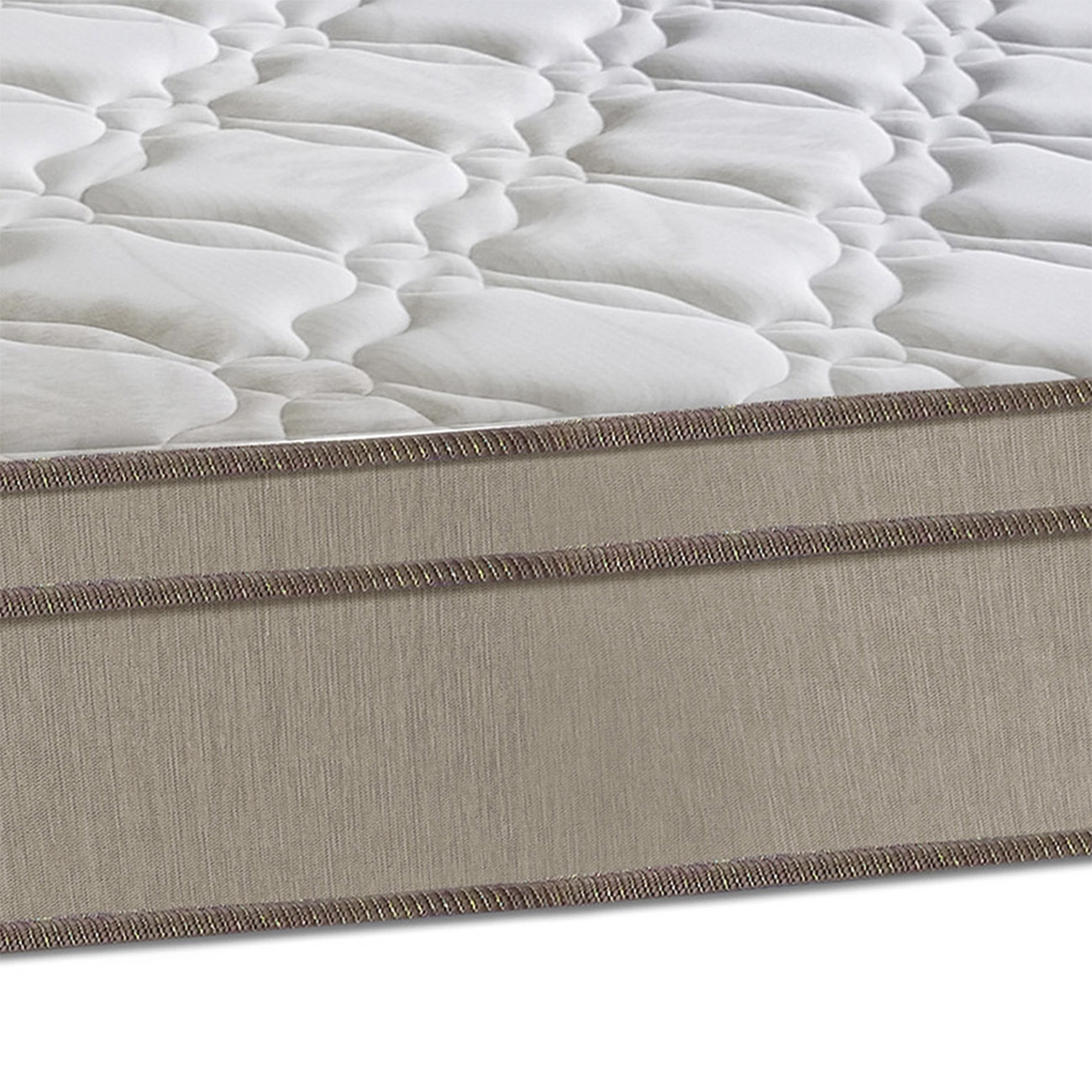 Esse é o Colchão De Molas, com revestimento superior em tecido de poliéster e duas camadas de espuma D20, ele proporciona uma experiência de sono firme e confortável. O Colchão Box conta com estrutura de molas Bonnell em aço que oferece resistência e durabilidade, enquanto as bordas em espuma D26 reforçam a estabilidade. O estofamento superior inclui uma lâmina de espuma D26, que pode ser substituída por uma espuma aglomerada D65 para maior durabilidade.