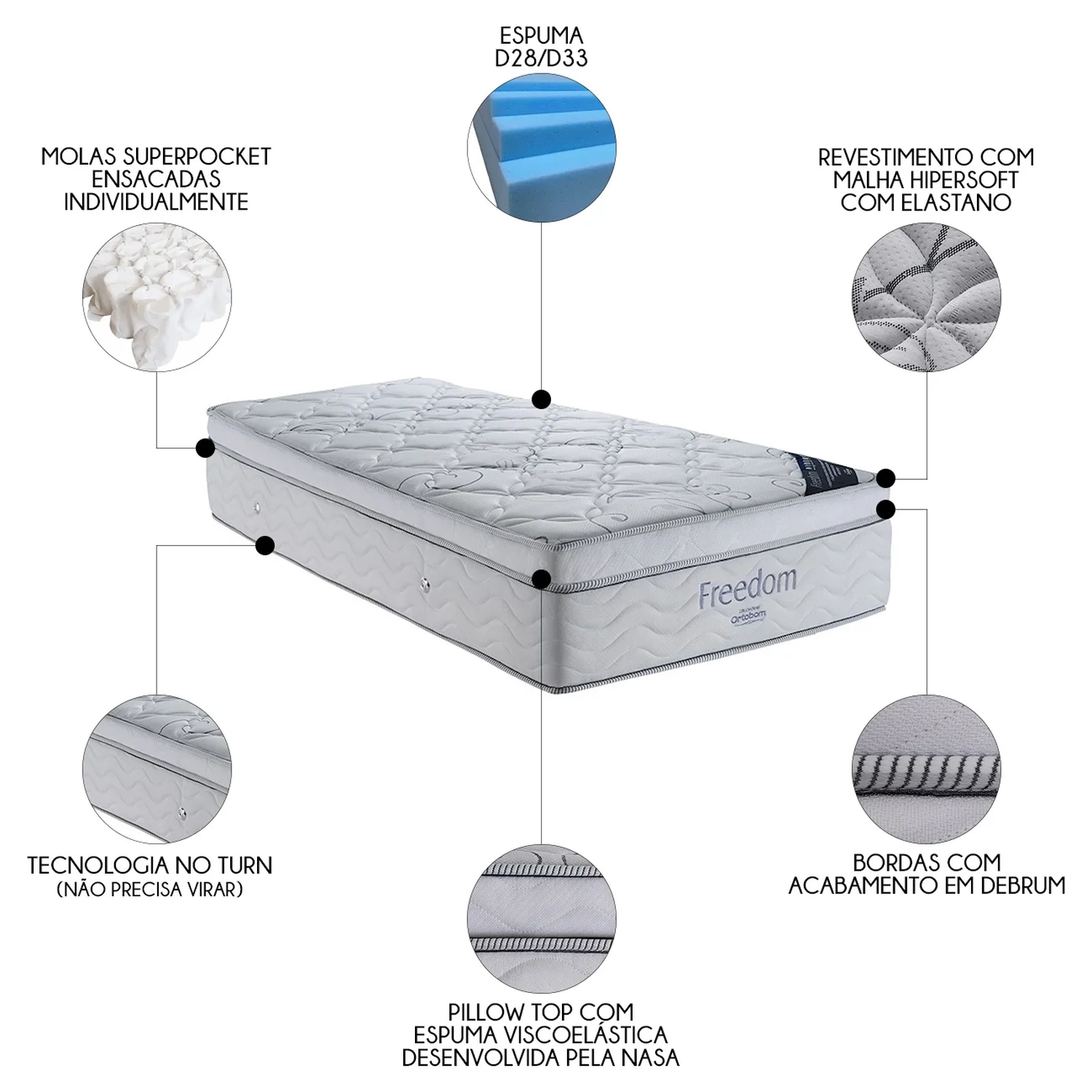Viva uma verdadeira revolução no mundo do sono com o Colchão Solteiro Freedom, da Ortobom.