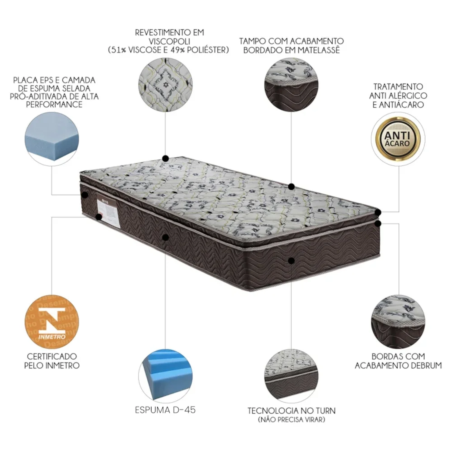 - Sistema No Turn, não precisa virar o colchão.