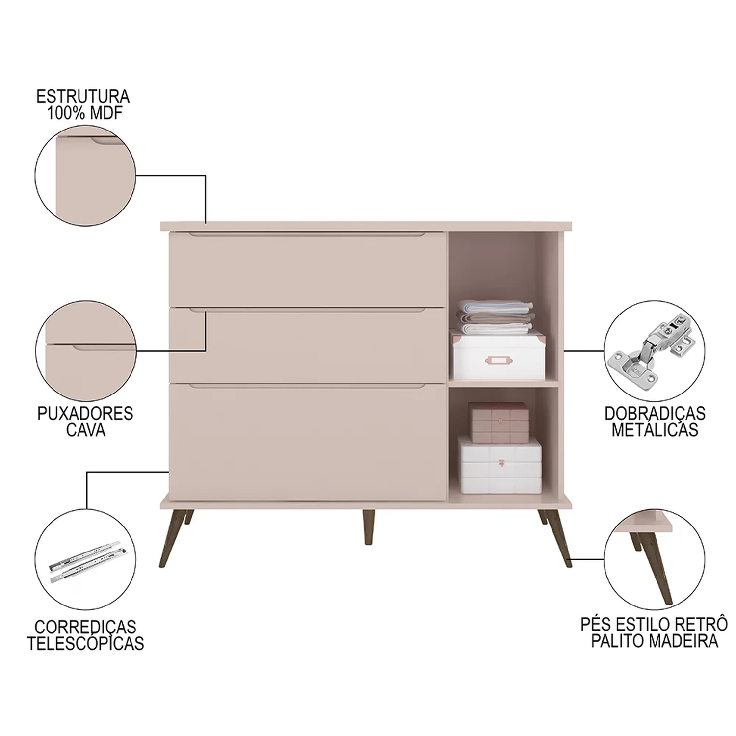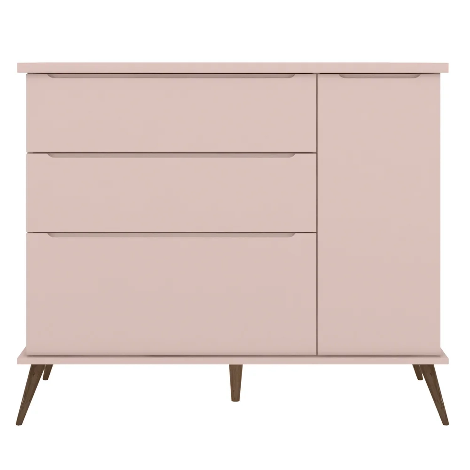 Cômoda Infantil 1 Porta 3 Gavetas 100% MDF Pés Retrô Melinda Rosê - Phoenix 140737