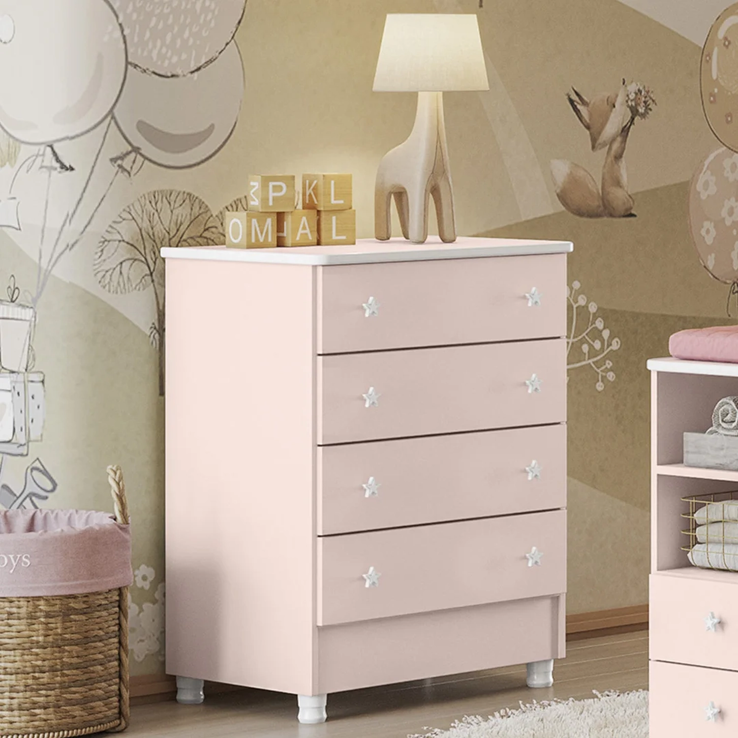 A Cômoda Infantil com 4 Gavetas Doce Sonho Rosa da Qmovi, é a escolha ideal para quem deseja um móvel que combina encanto e funcionalidade para o Quarto do Bebê.