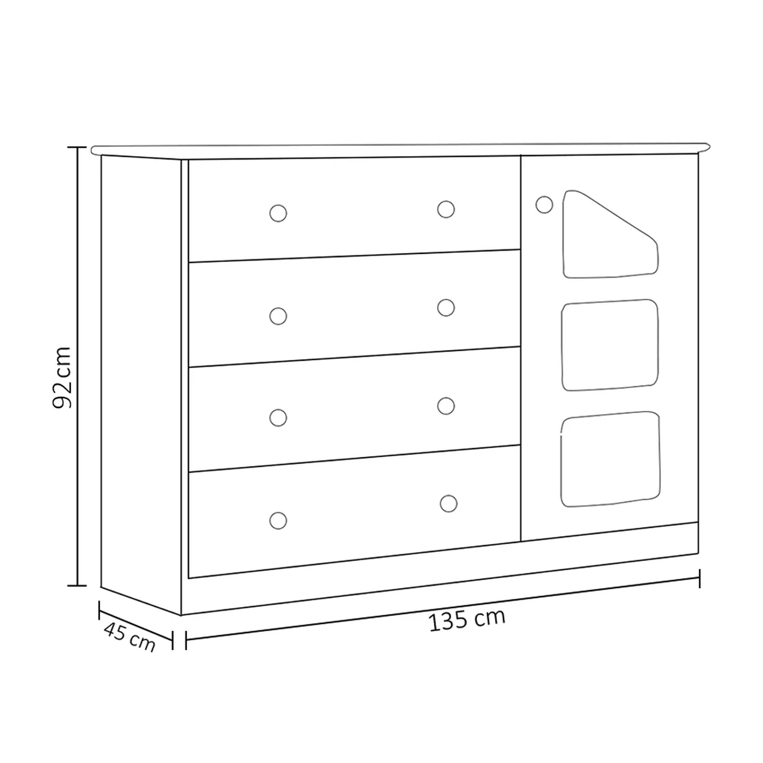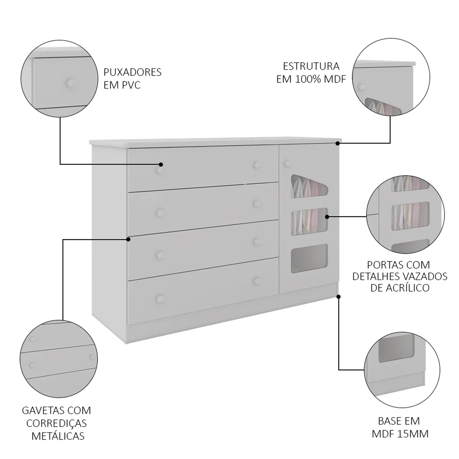 A Cômoda Infantil Eloísa 04 Gavetas e 01 Porta Branco, da Phoenix Baby vai ficar perfeita no quarto do seu bebê!