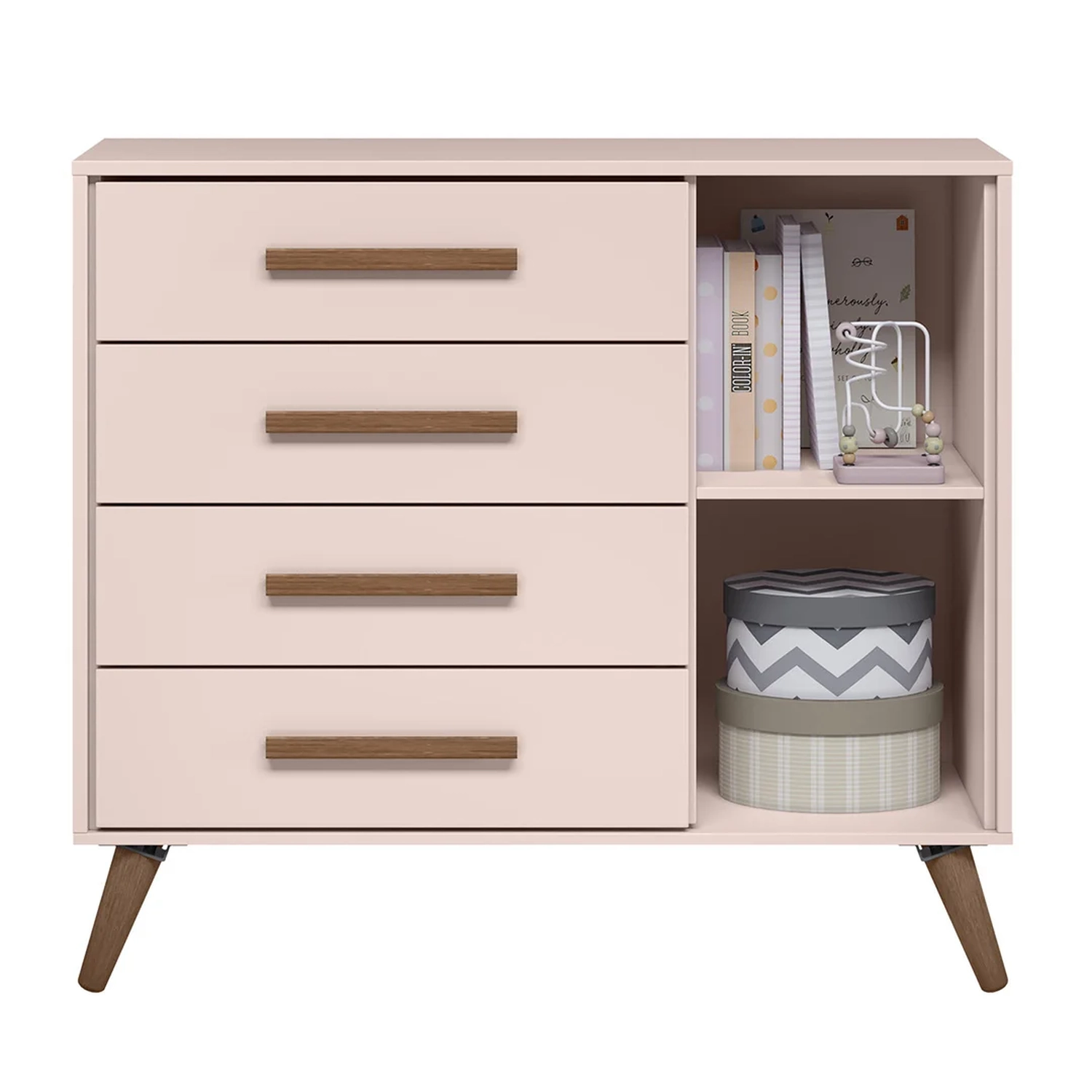 A Cômoda Sapateira Infantil 4 Gavetas Q Encanto Retrô Rosa da Qmovi, é a escolha perfeita para quem procura um móvel encantador e altamente funcional para o Quarto Infantil.