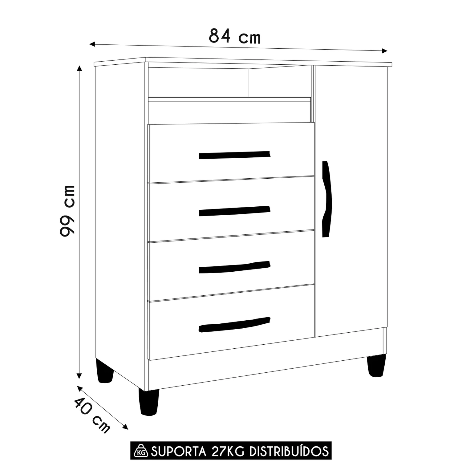 Com um design clean e moderno, a Cômoda oferece amplo espaço de armazenamento para roupas, acessórios e itens diversos, mantendo o ambiente sempre organizado. As gavetas são equipadas com corrediças telescópicas, garantindo um deslizamento suave e silencioso, facilitando o uso diário de maneira eficiente. O acabamento da Cômoda Sapateira é impecável, com pintura UV que proporciona maior resistência à superfície, além de um visual brilhante e duradouro. O puxador em ABS, material resistente e de alta qualidade, complementa o design moderno e elegante da peça, tornando a abertura das gavetas simples e prática. A combinação de materiais e acabamentos de qualidade assegura a durabilidade do móvel, tornando-o uma escolha inteligente para o seu lar. Além das gavetas, conta com uma porta de dobradiças metálicas, oferecendo um compartimento adicional para armazenar itens maiores ou mais volumosos. A porta, robusta e funcional, garante mais versatilidade ao móvel, que pode se adaptar a diferentes necessidades de armazenamento.