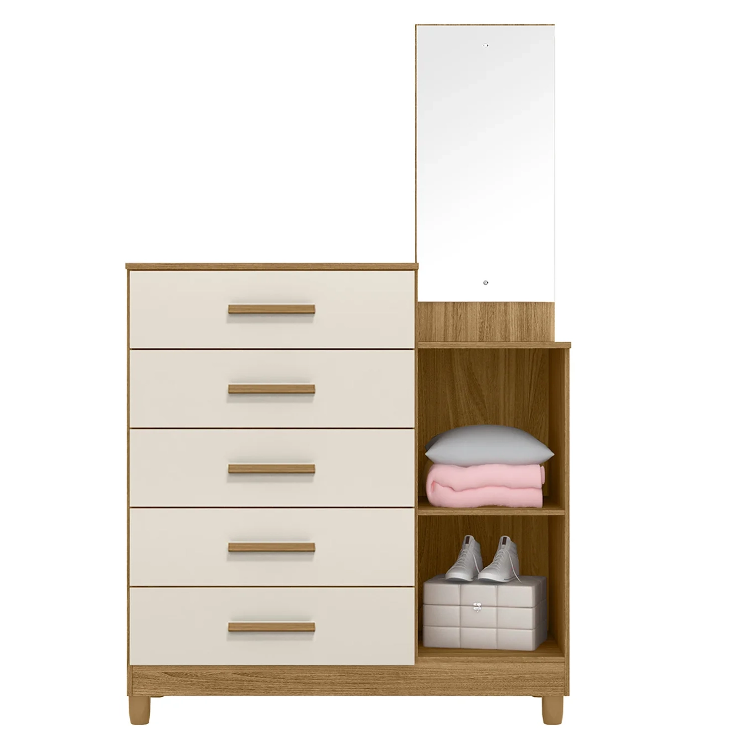 Cômoda Para Quarto 104cm Com Espelho Kyra Freijó/Off Z17 - Mpozenato
