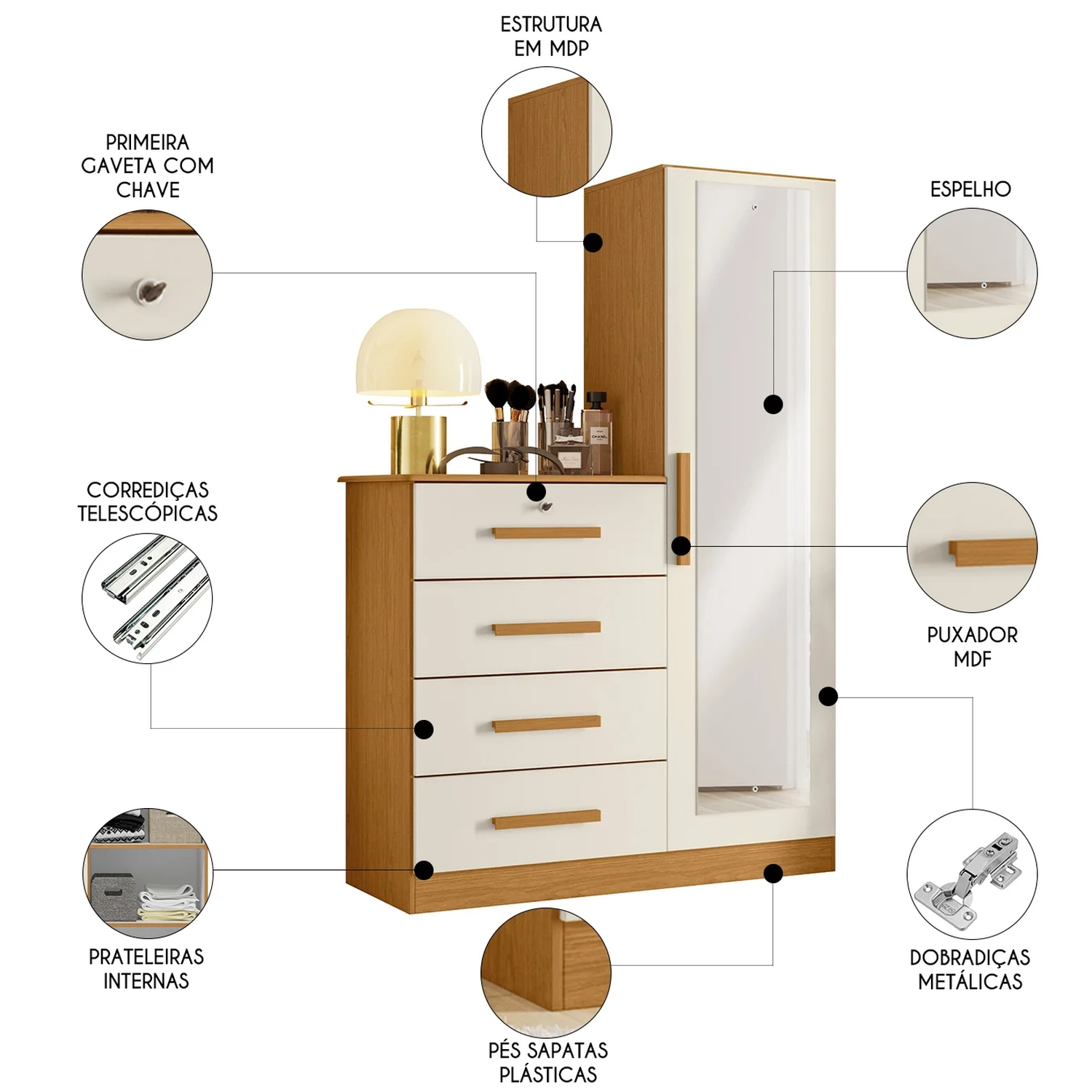 A Cômoda Para Quarto 109cm 1 Porta Belize Plus Off/Cinamomo, da Mpozenato é a escolha ideal para quem busca organização, segurança e sofisticação.