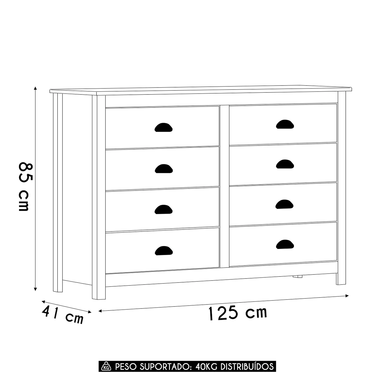 Cômoda Para Quarto 125cm 8 Gavetas Lázio Freijó F07