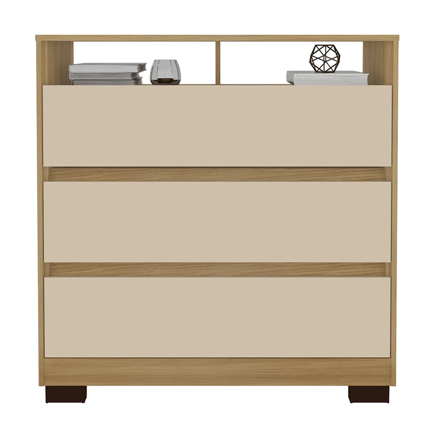 Ideal para guardar roupas de cama, mesa e banho ou até mesmo blusas de inverno ou peças que não amassam, a Cômoda para Quarto 3 Gavetas 90cm Califórnia Carvalho Americano/Off White, da Incorplac, foi desenvolvida com a proposta de adicionar organização e funcionalidade ao seu ambiente.