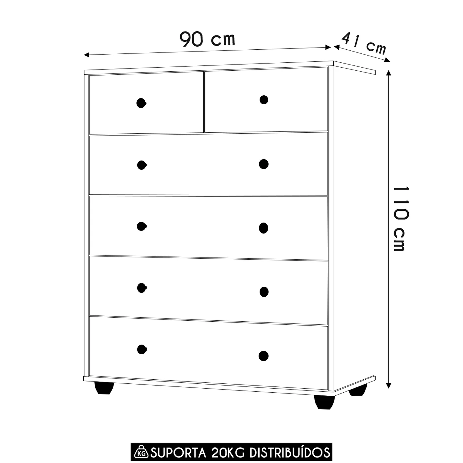 A Cômoda 6 Gavetas, sendo todas com corrediças telescópicas, ela oferece organização eficiente para roupas e objetos, ajudando a otimizar o espaço de qualquer ambiente. Seu design moderno e arrojado traz um toque de sofisticação ao ambiente. As gavetas possuem sistema de trava nas unidades maiores, garantindo maior segurança, durabilidade e um deslizar suave. A estrutura em MDP de 15mm assegura robustez, enquanto os pés ABS conferem estabilidade e resistência ao móvel. Combinando funcionalidade e estilo, esta Cômoda é uma excelente escolha para quem busca praticidade sem abrir mão de um visual contemporâneo. Ideal para quem valoriza organização e quer aproveitar ao máximo o espaço disponível no Quarto.