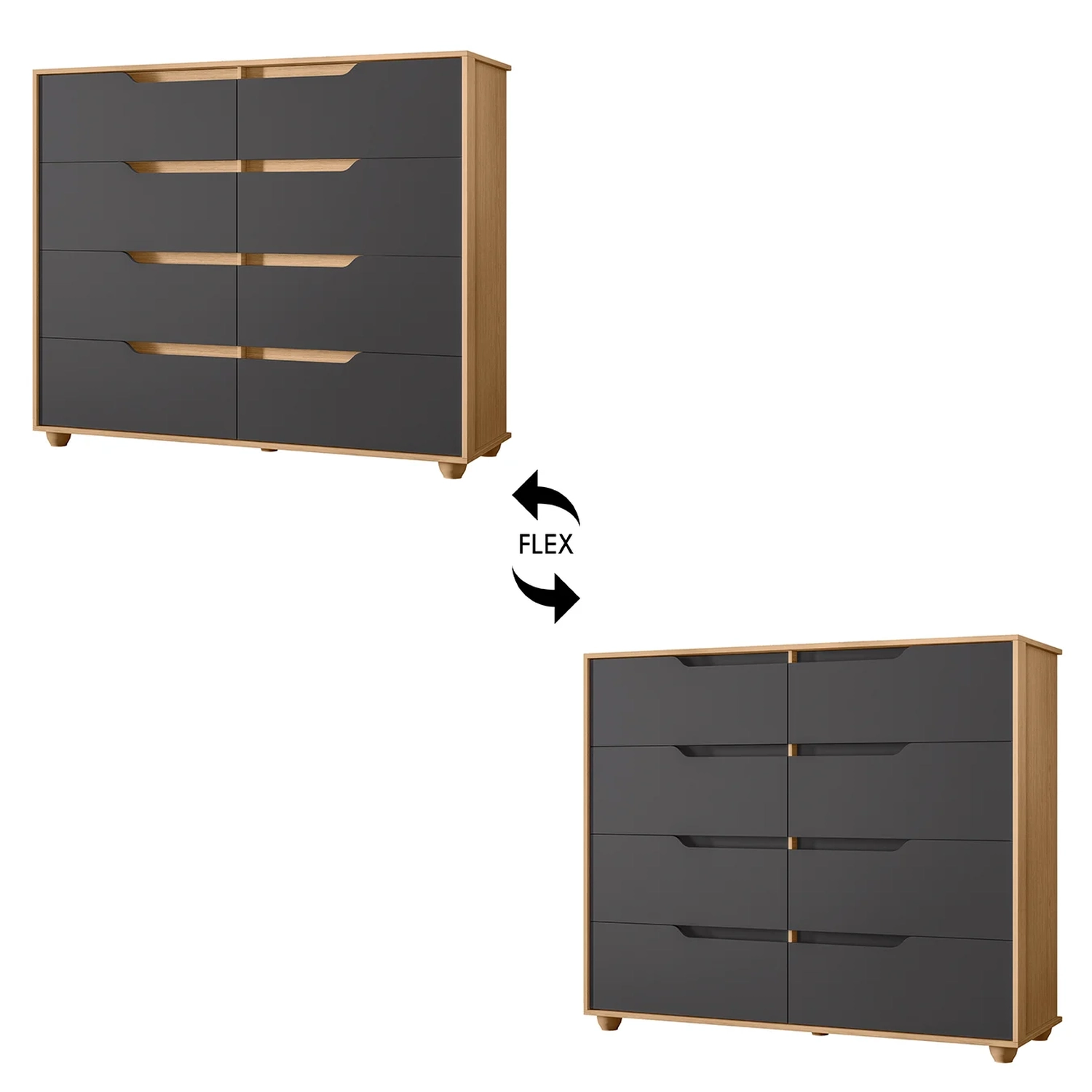 A Cômoda Para Quarto 8 Gavetas 136cm Doble Flex Freijó/Titanium, da Mpozenato é a solução perfeita para quem precisa de muito espaço de armazenamento com um design sofisticado e funcional.