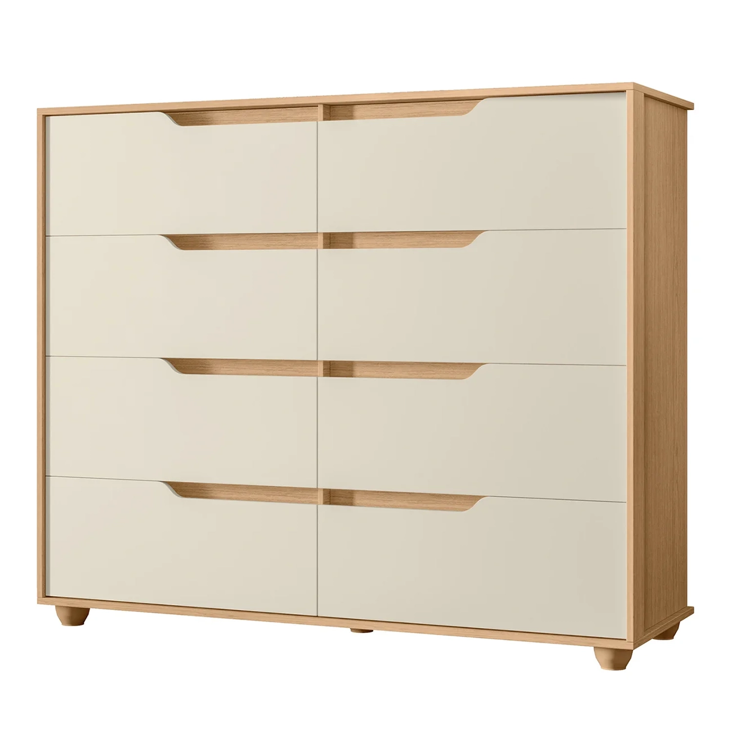 A Cômoda Para Quarto 8 Gavetas 136cm Doble Flex Off/Freijó, da Mpozenato é a solução perfeita para quem precisa de muito espaço de armazenamento com um design sofisticado e funcional.