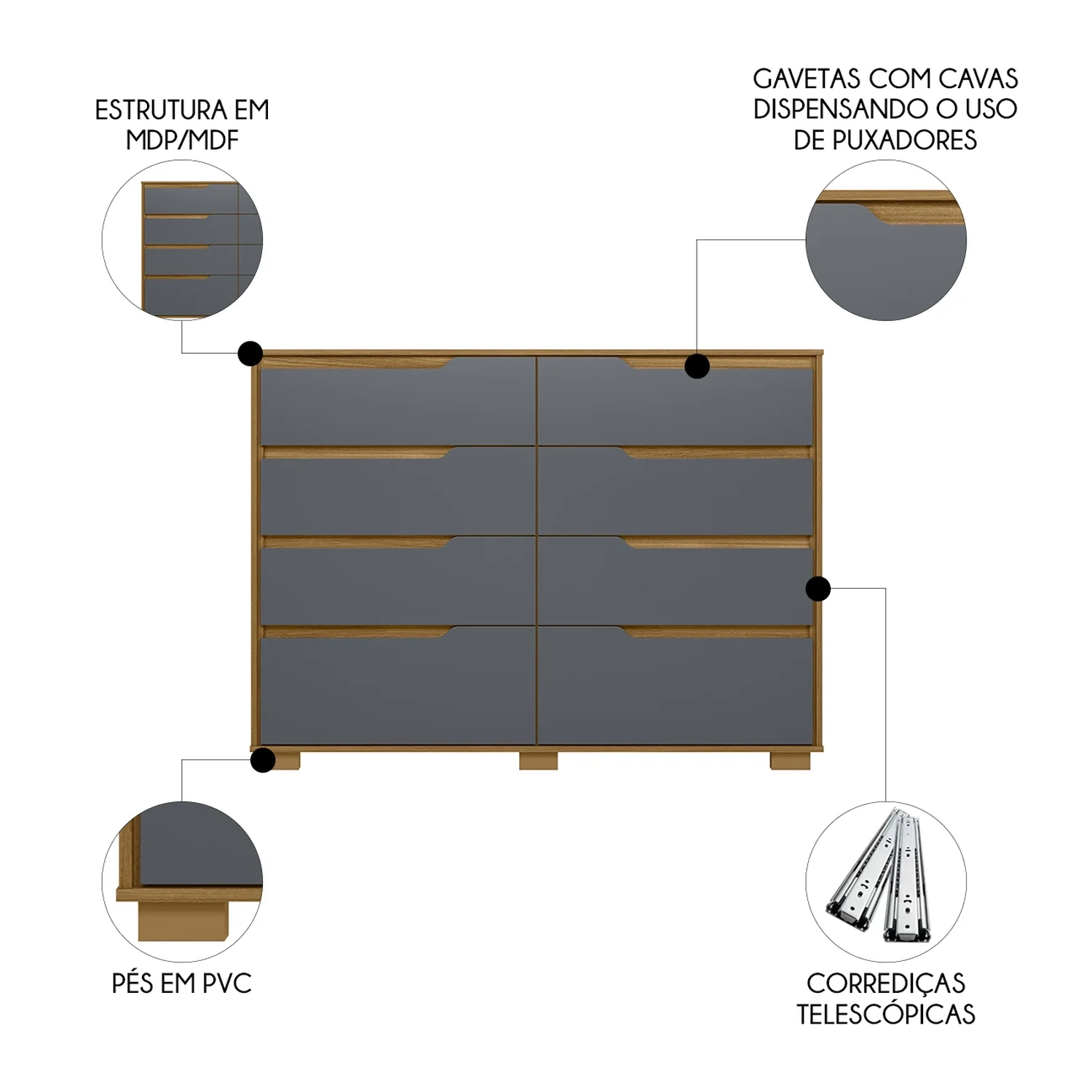 Quantidade de Gavetas: 8 Gavetas.