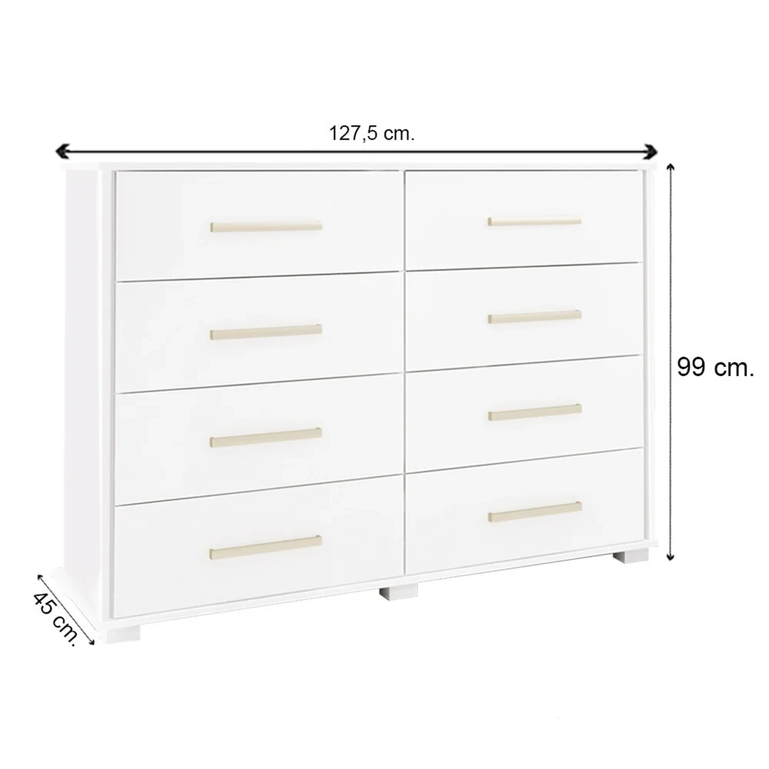 A Cômoda Lis é super espaçosa pois é composta com 8 gavetas bem profunda organizando de uma forma simples e fácil, facilitando o manuseio de seus pertences devido a correria do dia a dia.