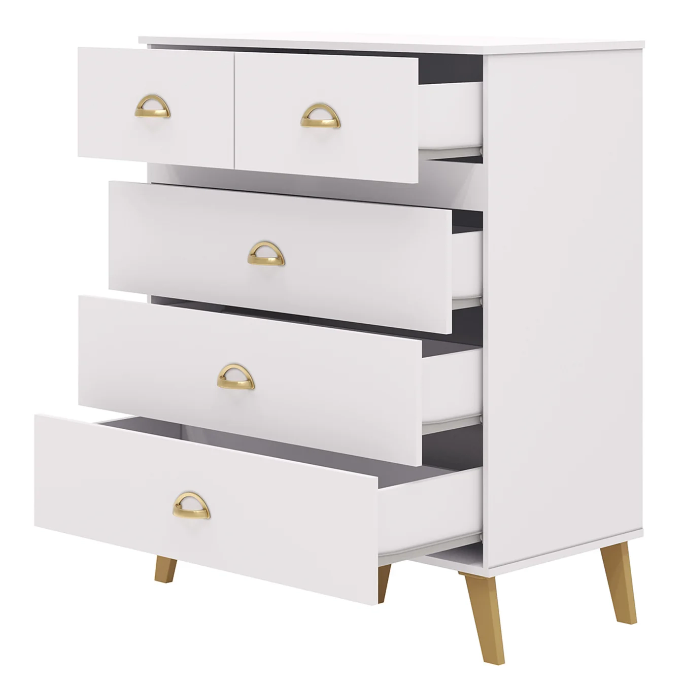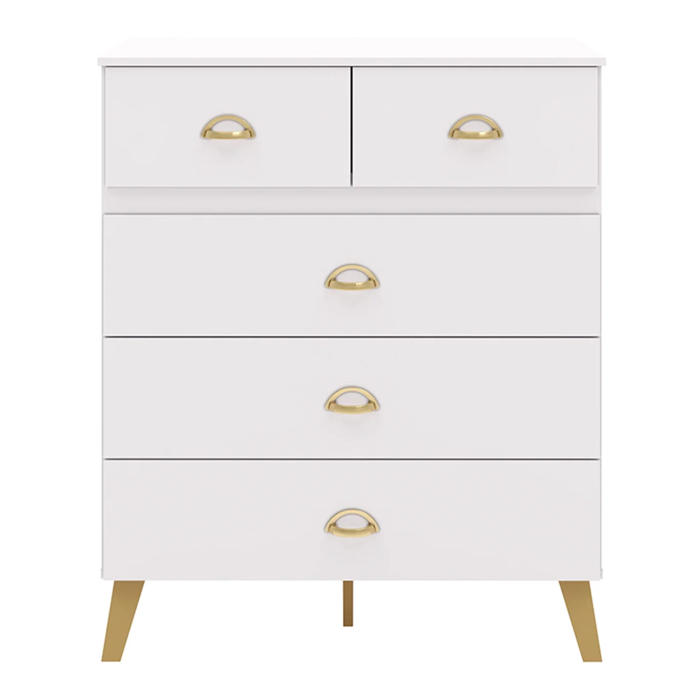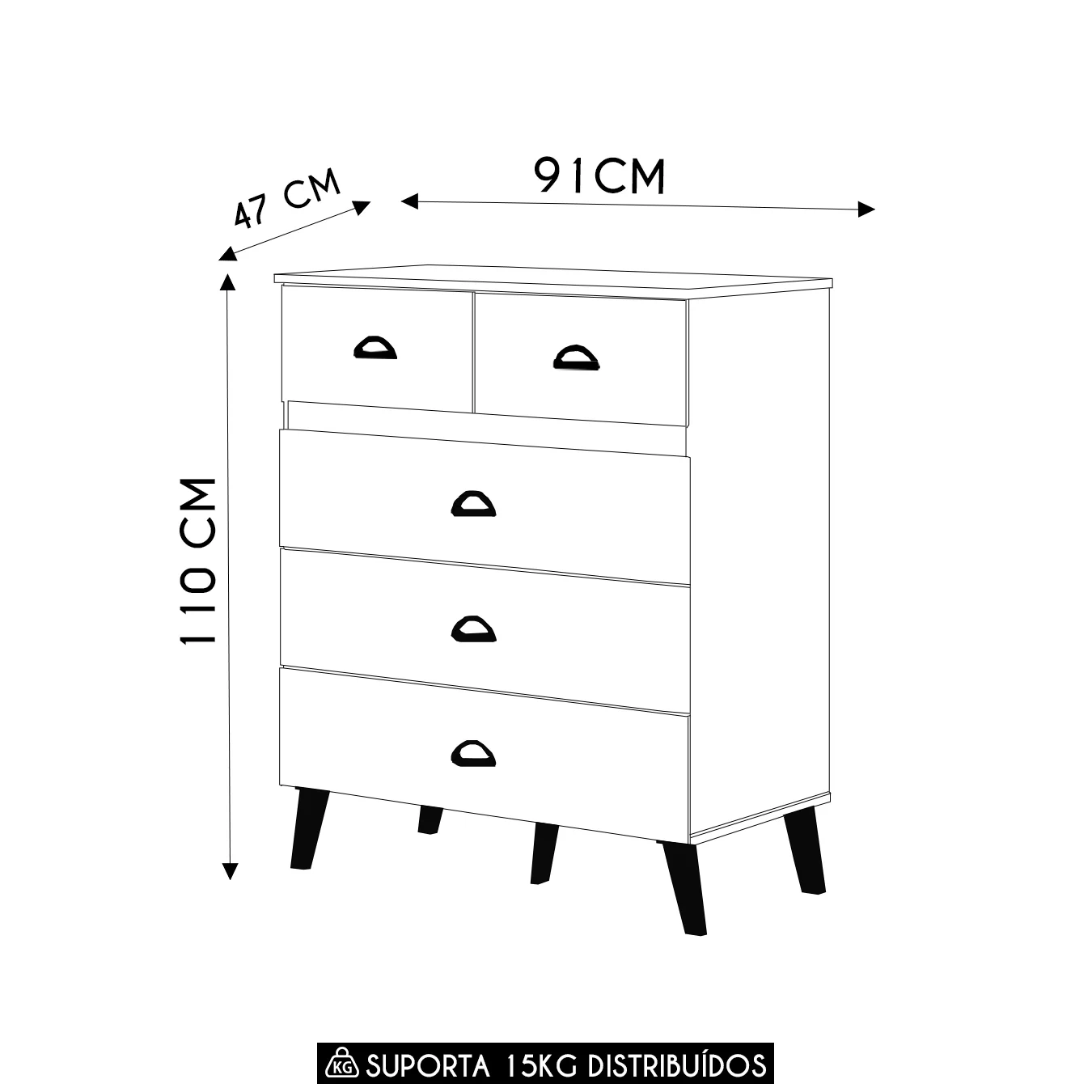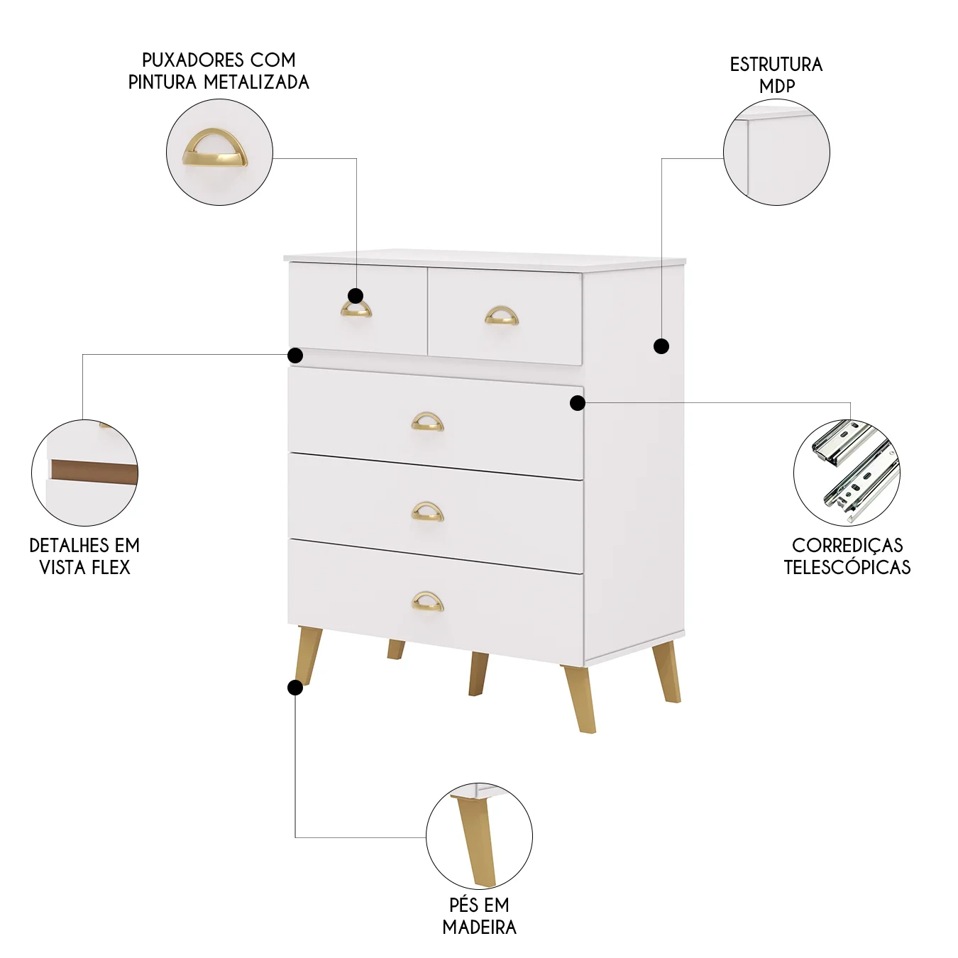 Cômoda Para Quarto 91cm 5 Gavetas Gaby Flex Branco/Camarim V02 - Mpozenato