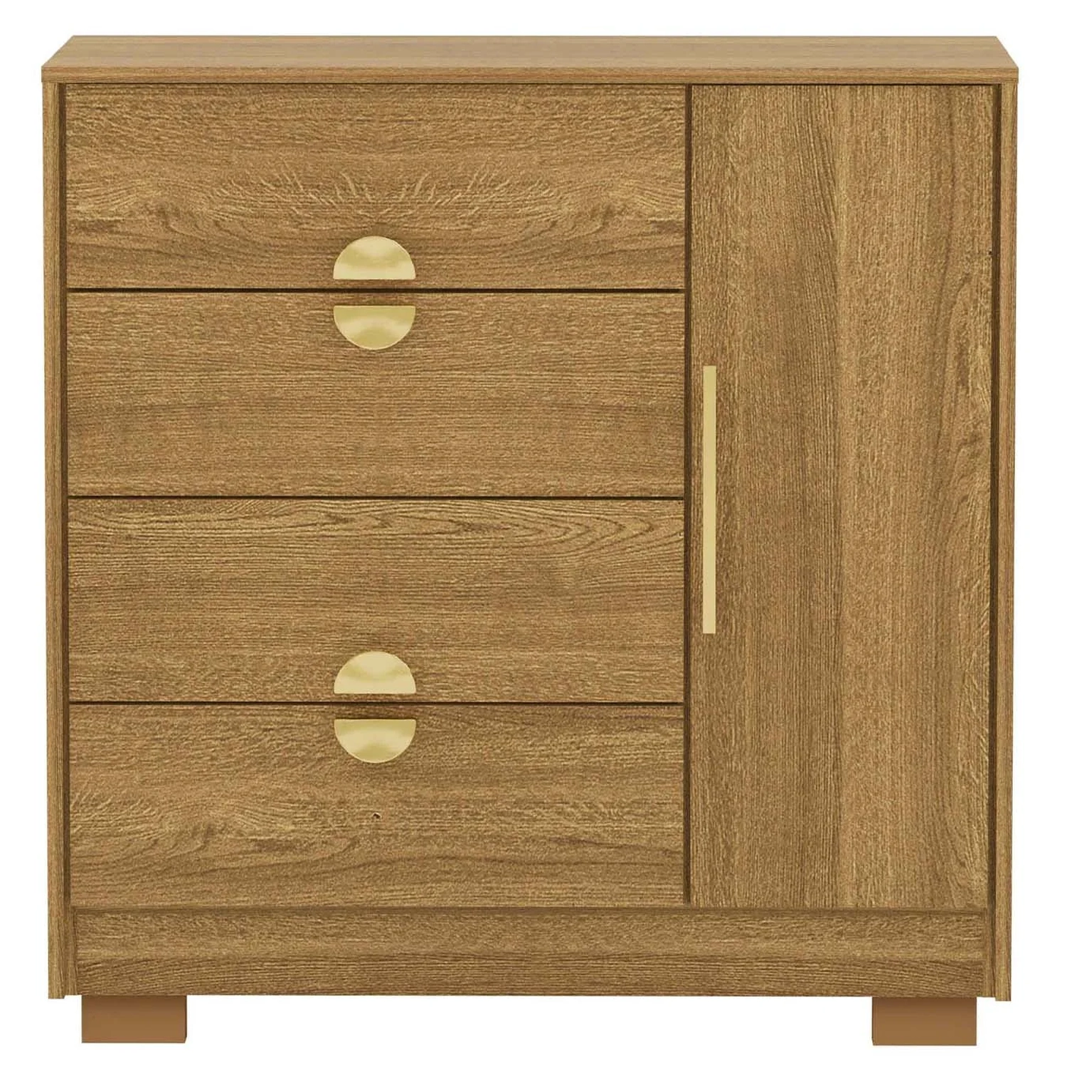 Com quatro gavetas equipadas com corrediças metálicas e uma porta lateral com prateleira móvel, a Cômoda Para Quarto oferece versatilidade e praticidade. Ela permite uma organização eficiente de diversos itens, mantendo o ambiente sempre arrumado e acessível. A estrutura foi projetada para garantir funcionalidade sem abrir mão do estilo.