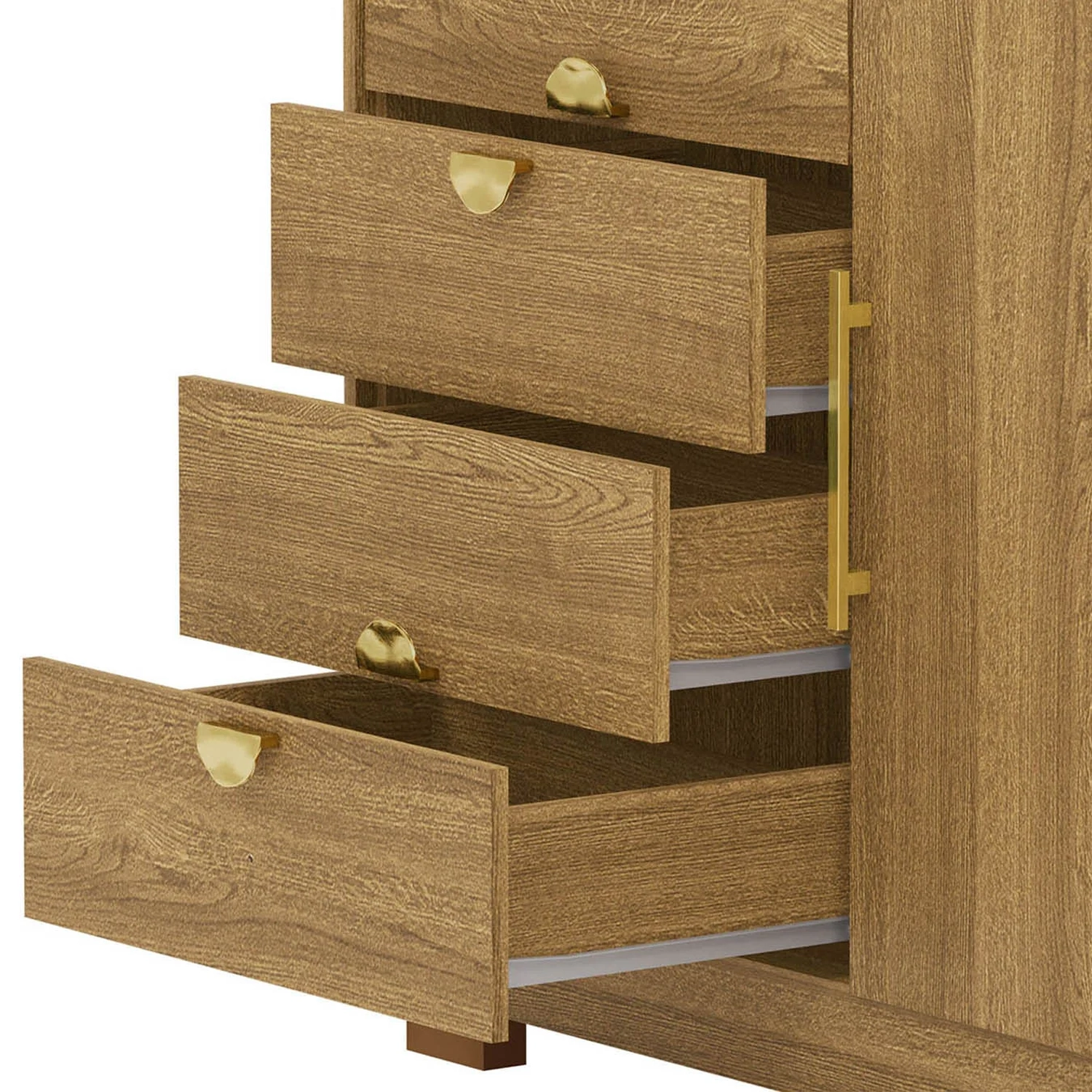 Com quatro gavetas equipadas com corrediças metálicas e uma porta lateral com prateleira móvel, a Cômoda Para Quarto oferece versatilidade e praticidade. Ela permite uma organização eficiente de diversos itens, mantendo o ambiente sempre arrumado e acessível. A estrutura foi projetada para garantir funcionalidade sem abrir mão do estilo.
