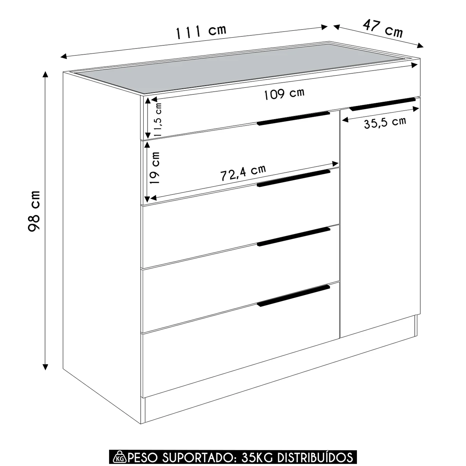 Com quatro gavetas e uma porta, esta Cômoda de Quarto oferece espaço de sobra para guardar roupas ou qualquer outro utensilio que melhor desejar. A Prateleira interna ajuda a deixar tudo ainda mais organizadoe funcional.