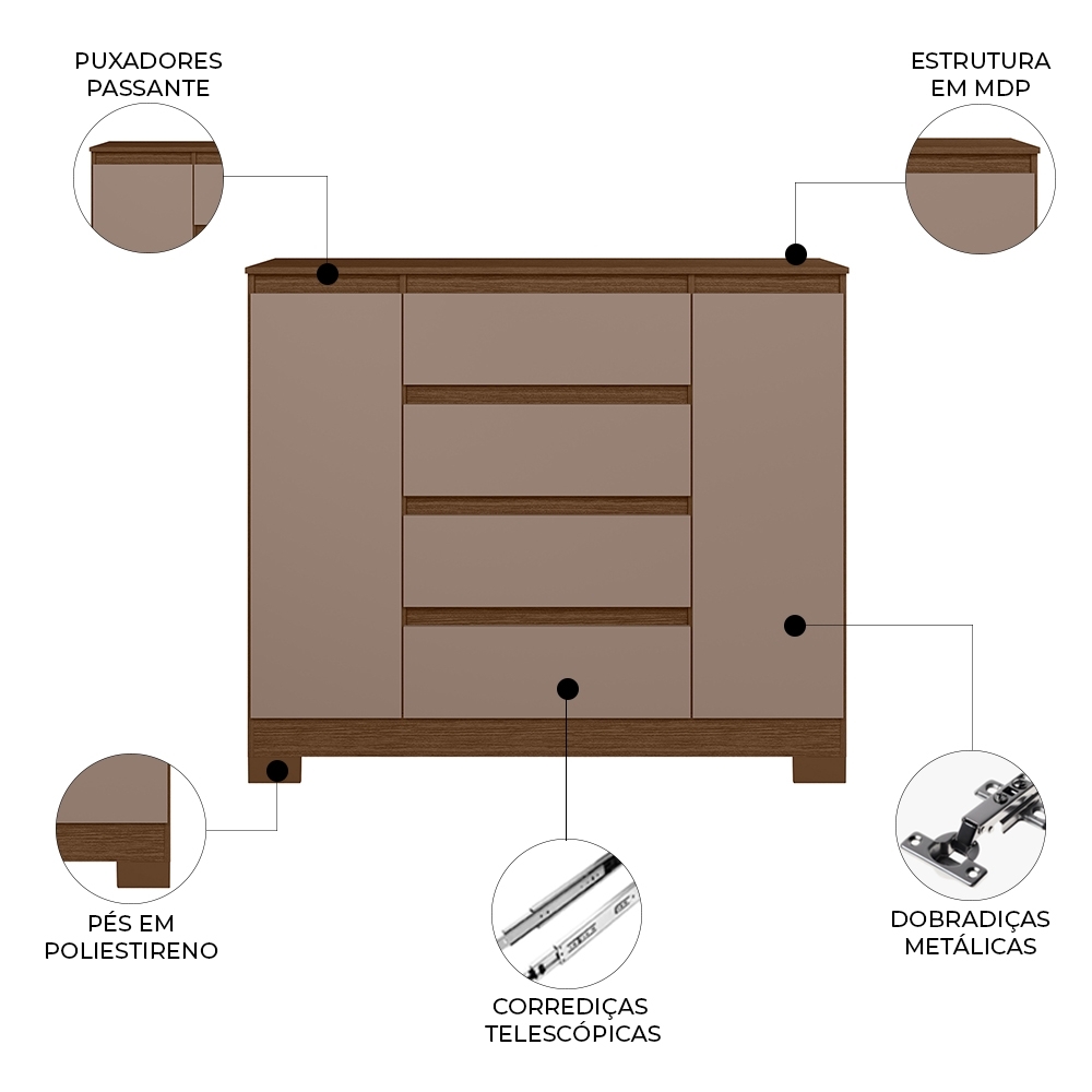 Quantidade de Gavetas: 4 Gavetas.