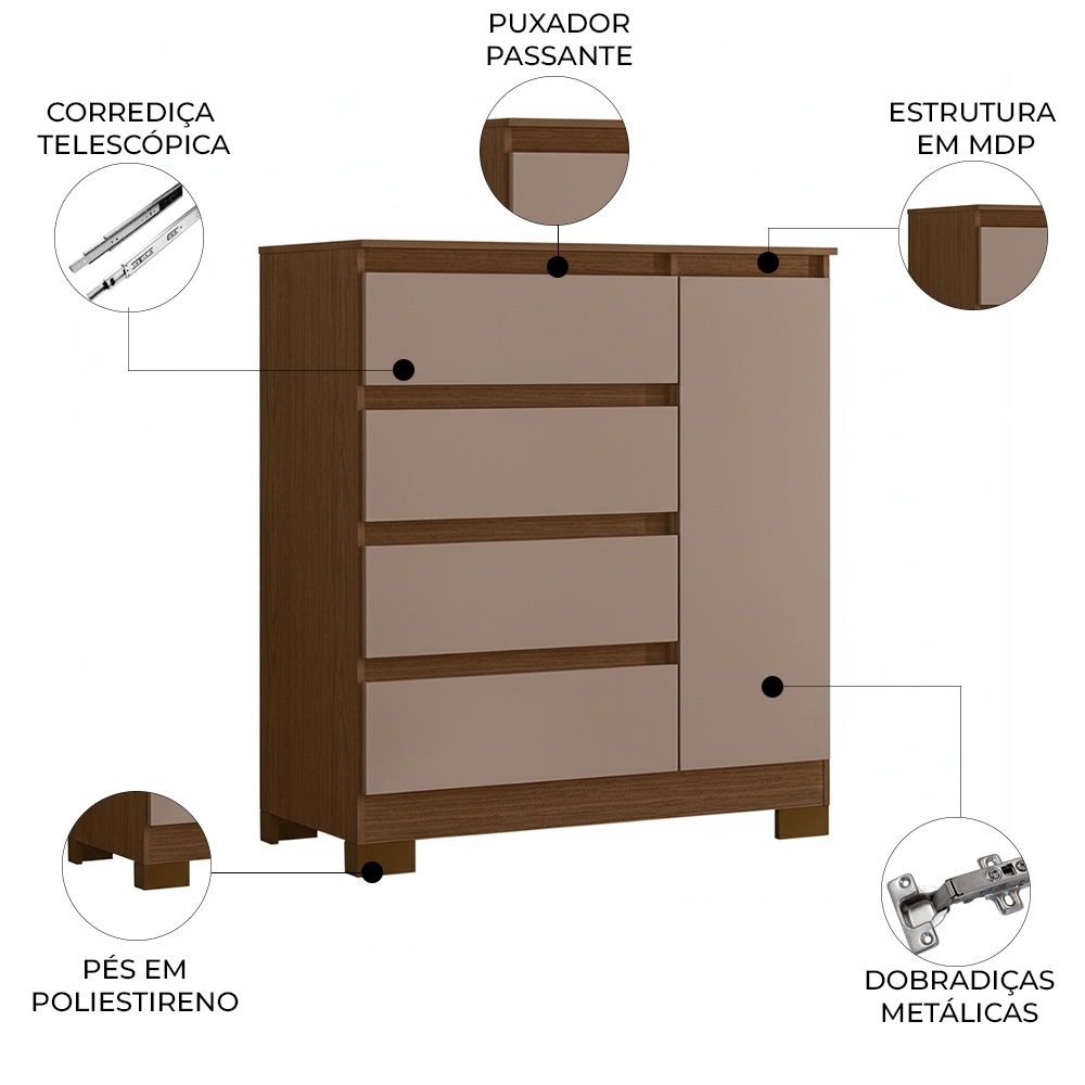 Quantidade de Gavetas: 4 Gavetas.