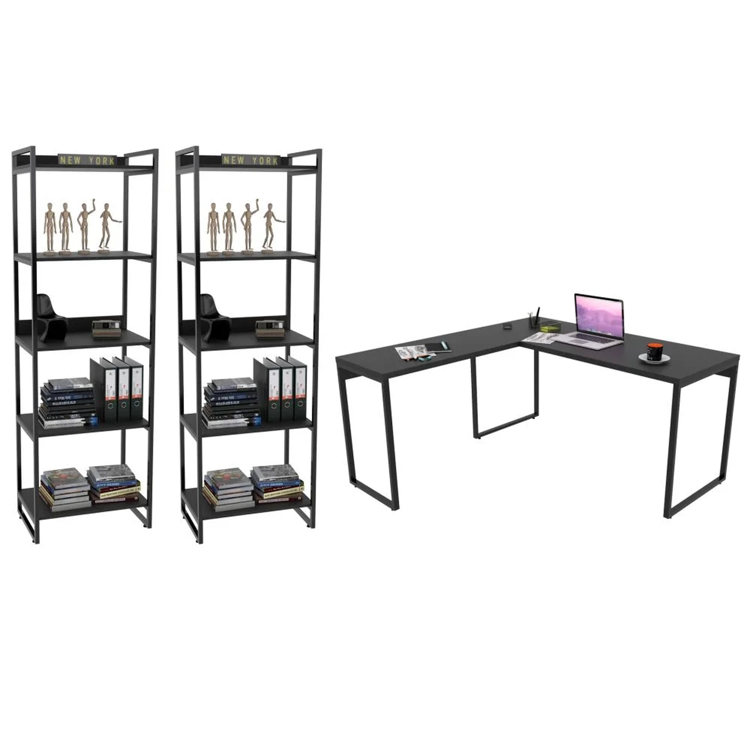 Conjunto Escritório Estilo Industrial Mesa 150x150cm e 2 Estantes 60cm 5 Prateleiras Prisma Nogal - Mpozenato, são ideais para valorizar sua decoração garantindo praticidade e estilo. Confeccionadas em MDP de 15 mm com acabamento em BP e partes metálicas em pintura epóxi que proporcionam maior durabilidade e resistência aos produtos. Além disso, contam com design inovador com seu estilo industrial combinando os tubos de aço à madeira, trazendo um pouco do charme urbano ao seu ambiente. Ideal para expor objetos decorativos como livros. Adquira já!