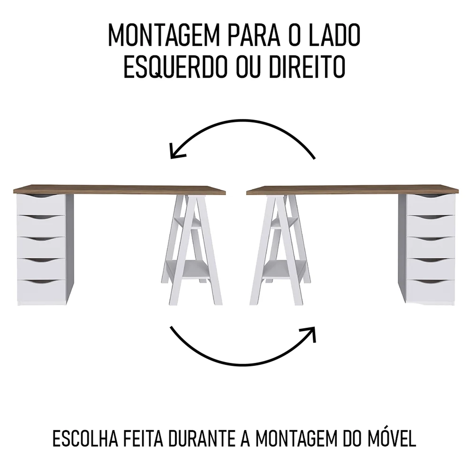 - Mesa pode ser montada tanto lado direito quanto esquerdo.
