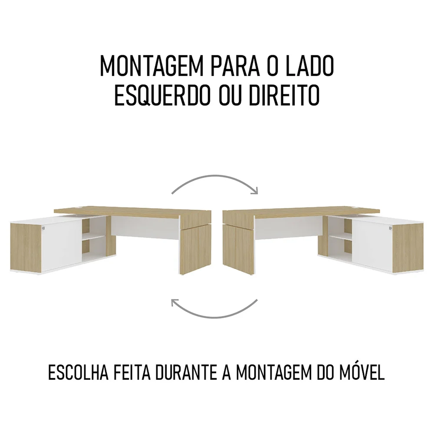 Atualize seu escritório e aumente sua produtividade com o conjunto de escritório com Conjunto Escritório Home Office 4 Peças Mesa Diretor Corp A06 Carvalho/Branco, da Mpozenato.