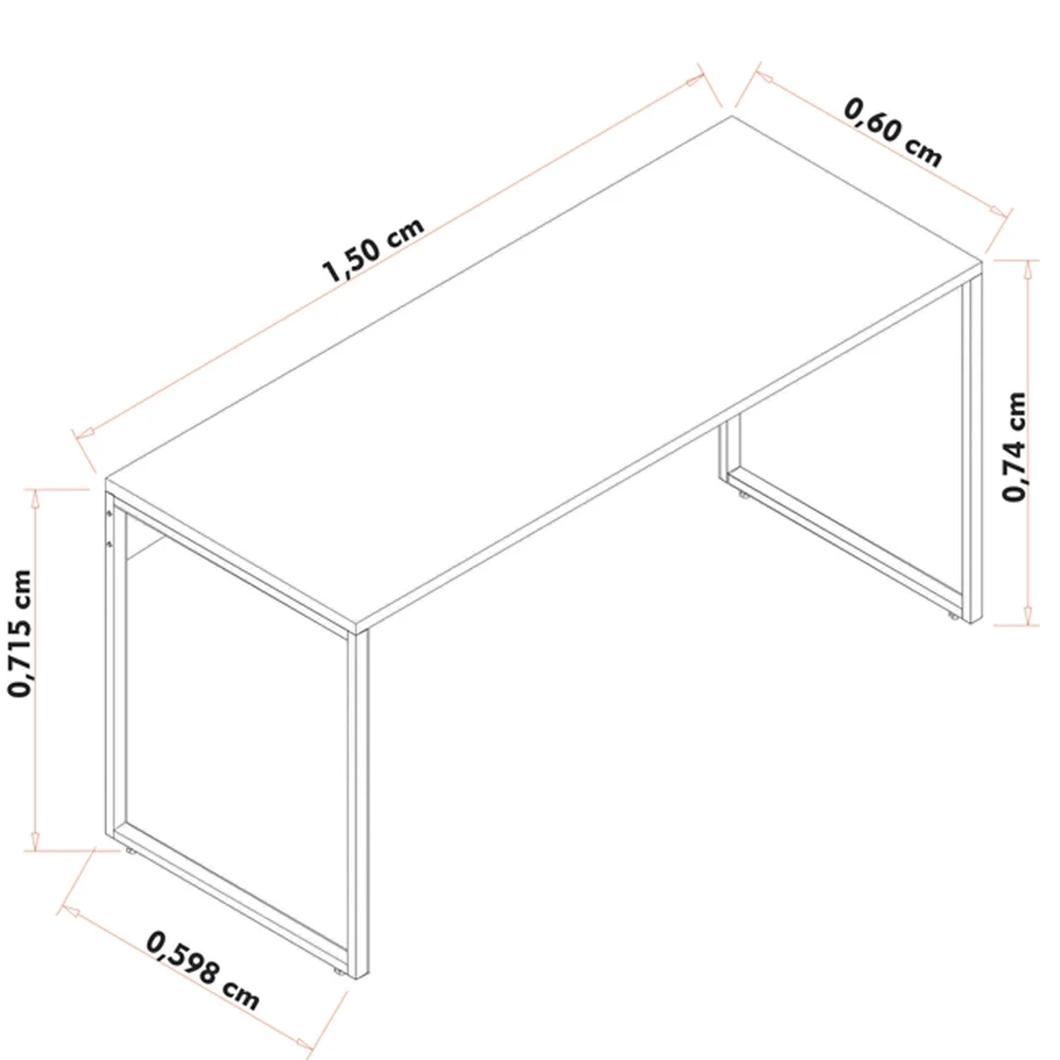 Mesa: 150 cm x 74 cm x 60 cm (L x A x P).