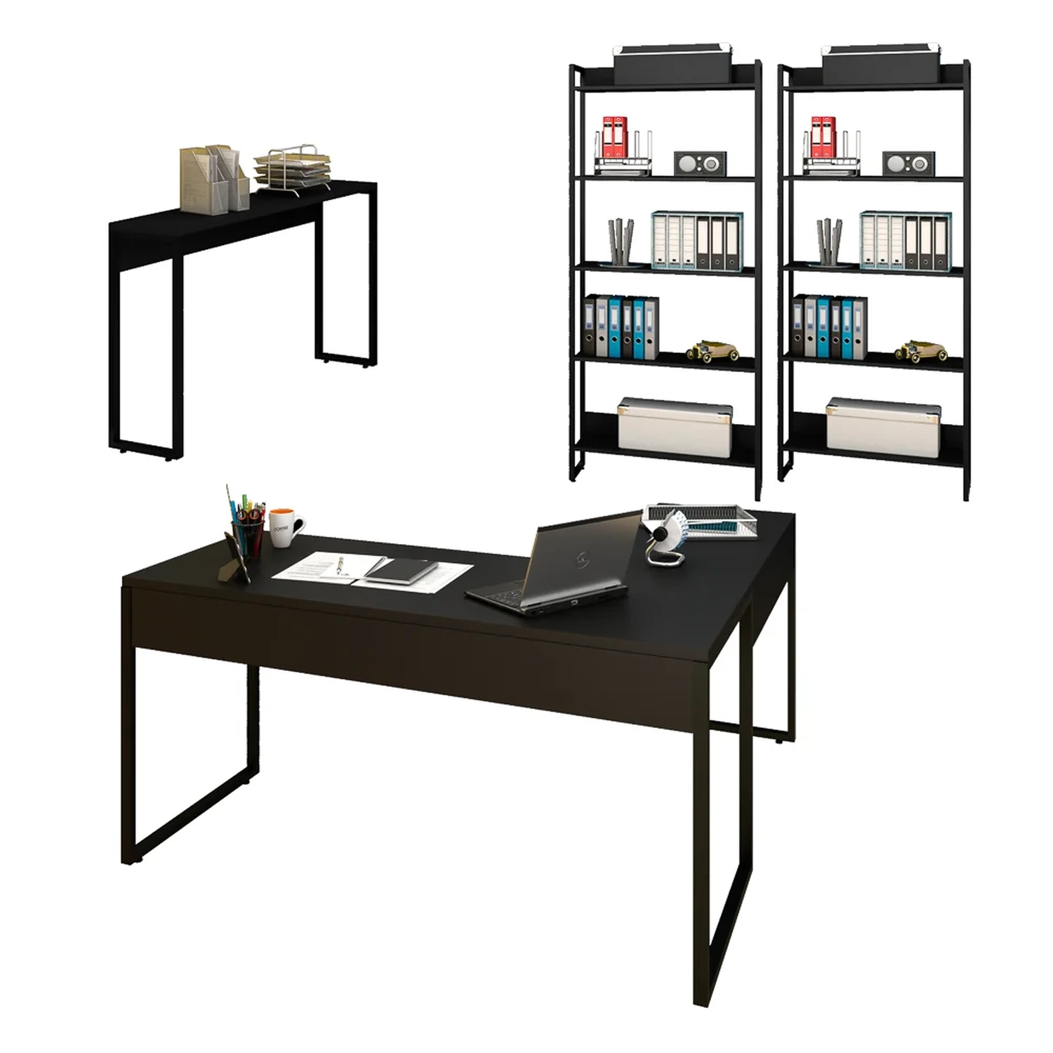 Pensando nisso, o Conjunto de Escritório Studio Industrial, da Mpozenato, é a solução para quem quer um ambiente versátil e proveitoso, pois conta com 4 peças, sendo 1 Mesa em L, 2 Estantes e 1 Aparador.