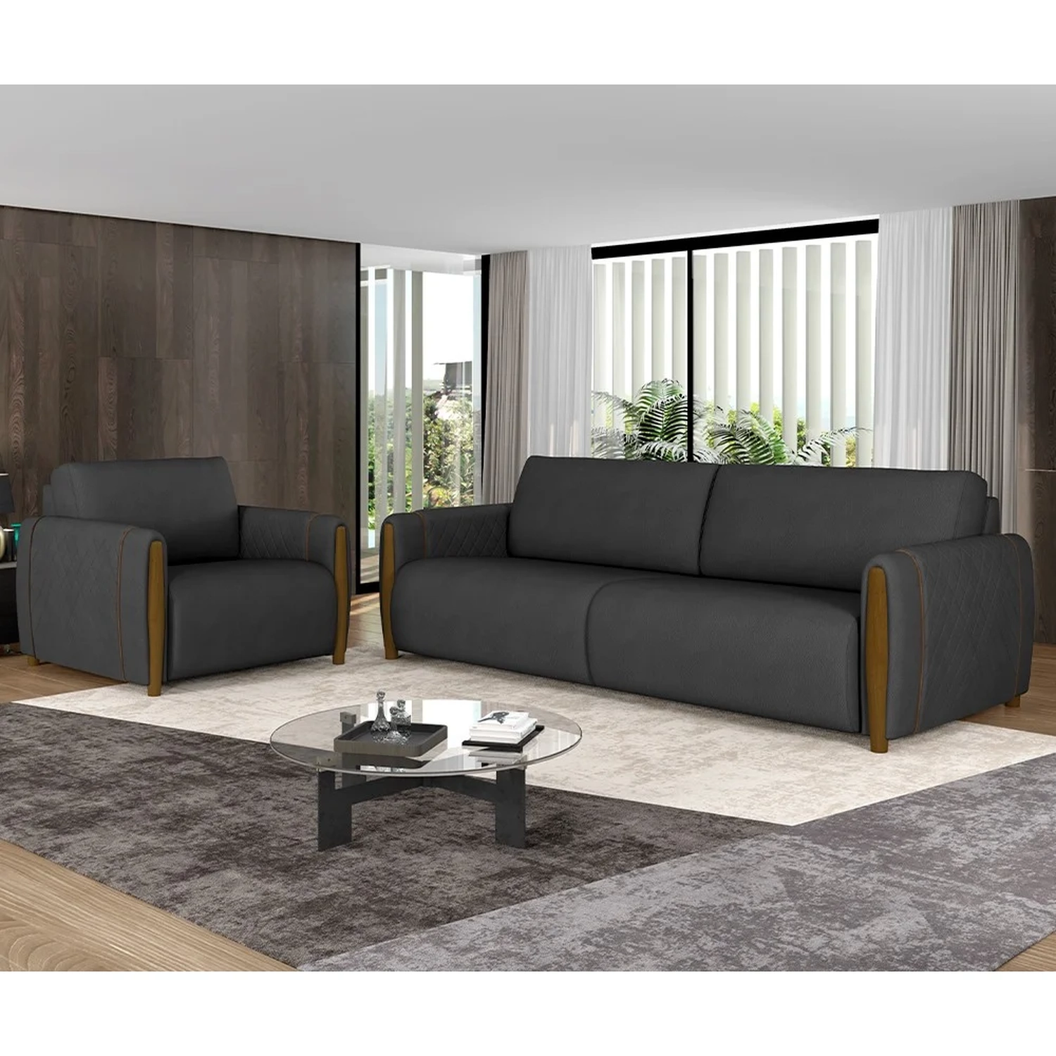 Uma sala de estar completa é indispensável para criar um ambiente acolhedor e aconchegante. Para tanto, apostar no Conjunto de Sofá 3 Lugares e Poltrona Amaranto PU Preto, da Mpozenato, é a escolha perfeita para quem busca por esses adjetivos.