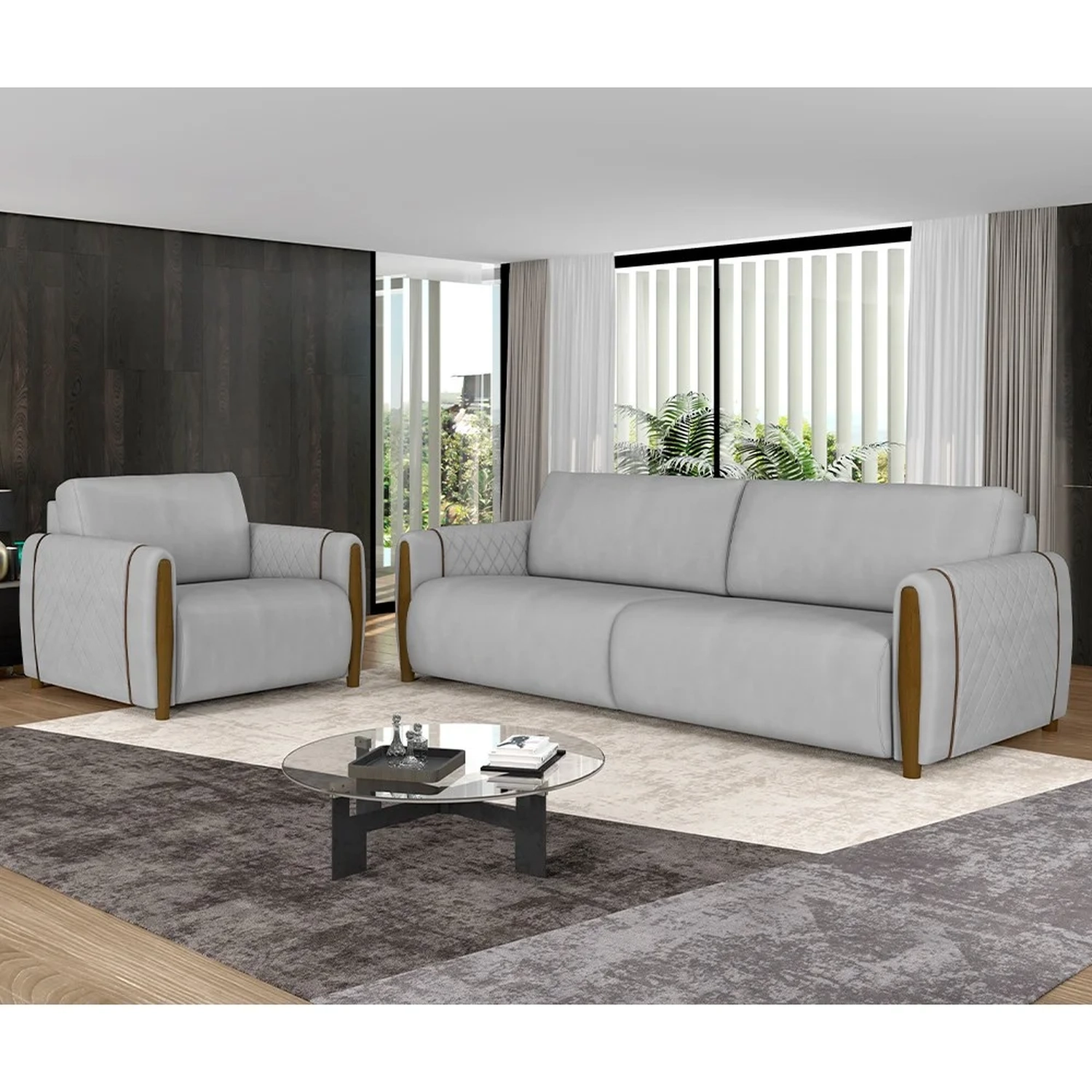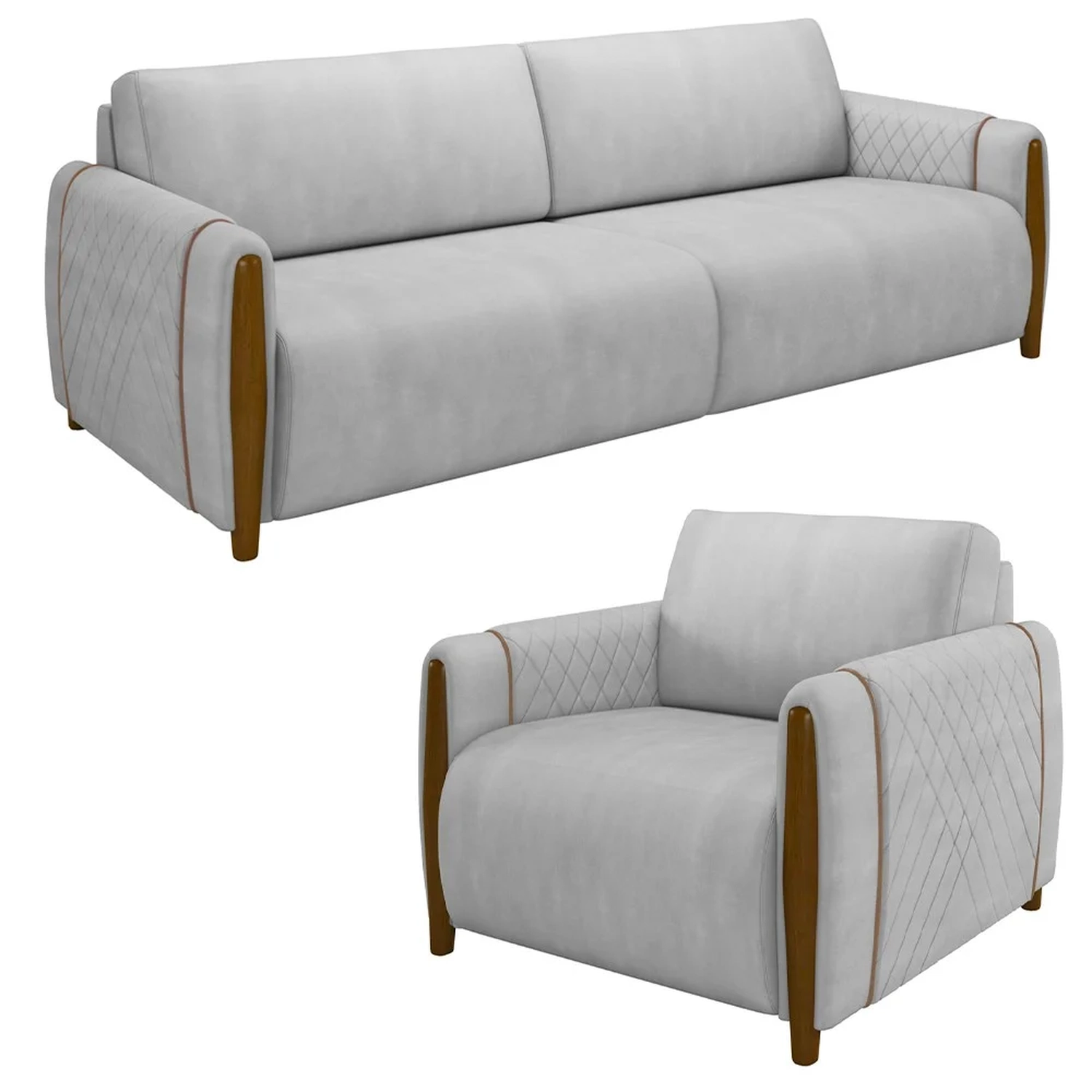 Uma sala de estar completa é indispensável para criar um ambiente acolhedor e aconchegante. Para tanto, apostar no Conjunto de Sofá 3 Lugares e Poltrona Amaranto Veludo Cinza, da Mpozenato, é a escolha perfeita para quem busca por esses adjetivos.